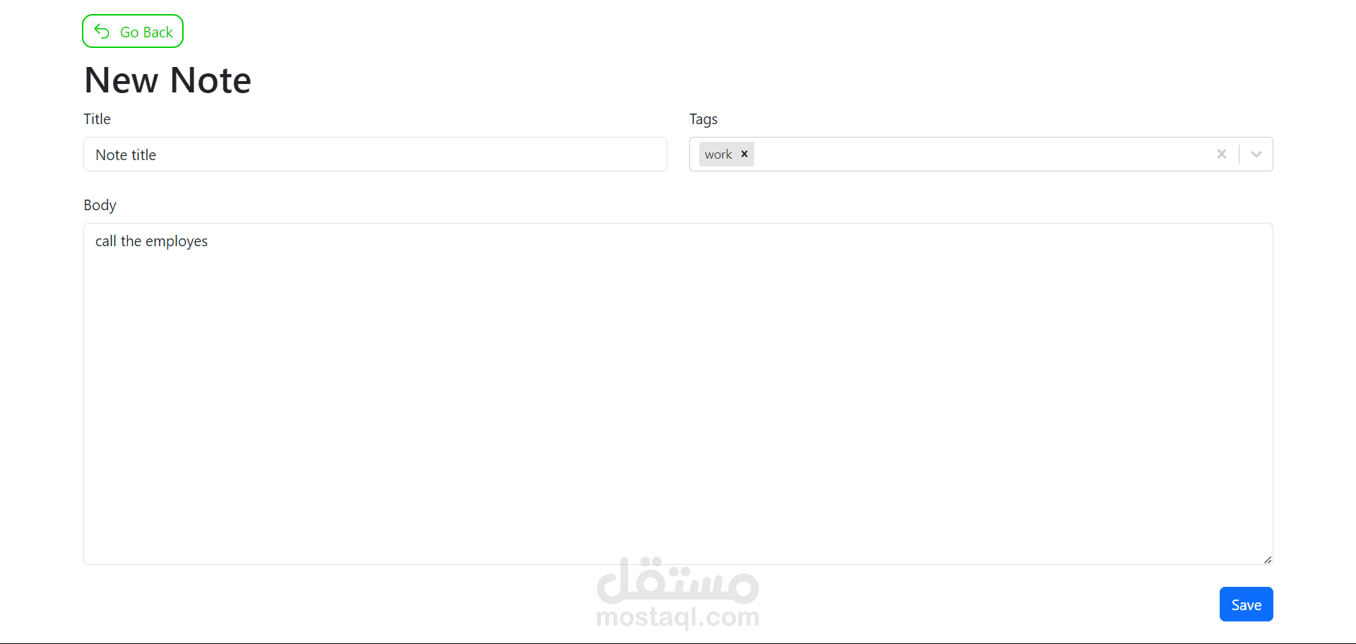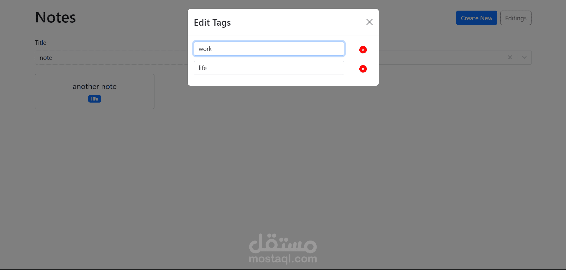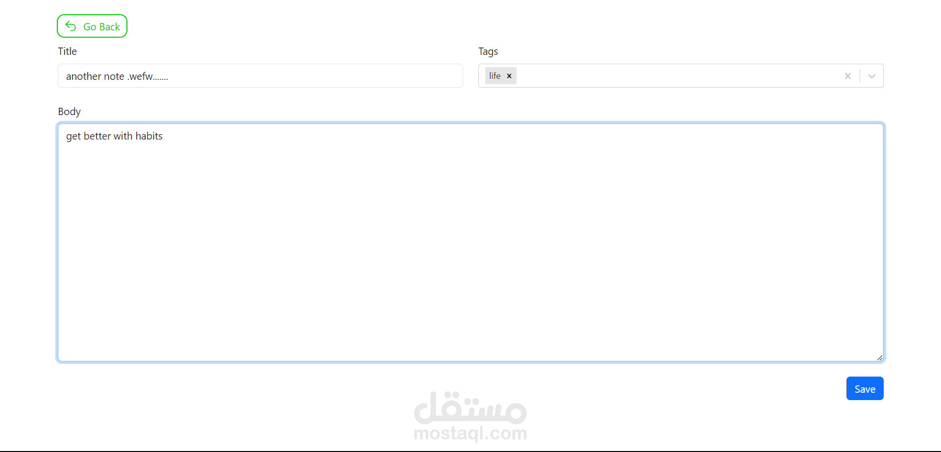 تطبيق ويب للملاحظات باستخدم React و TypeScript كأدوات رئيسية. يتيح لك إضافة ملاحظة مع وسم ذي صلة ووصف لهذه الملاحظة. يمكنك رؤية جميع الملاحظات المضافة في مكان واحد، والبحث فيها حسب العنوان فقط، أو حسب الوسم فقط، أو عن طريق الاثنين معًا. يمكنك فتح ملاحظة بشكل فردي لرؤية جميع التفاصيل حولها، وتحرير الملاحظة. يمكنك العودة إلى الخلف باستخدام زر الرجوع. يمكنك تحرير الوسوم أو حذف أحدها كما هو موضح في الصور.