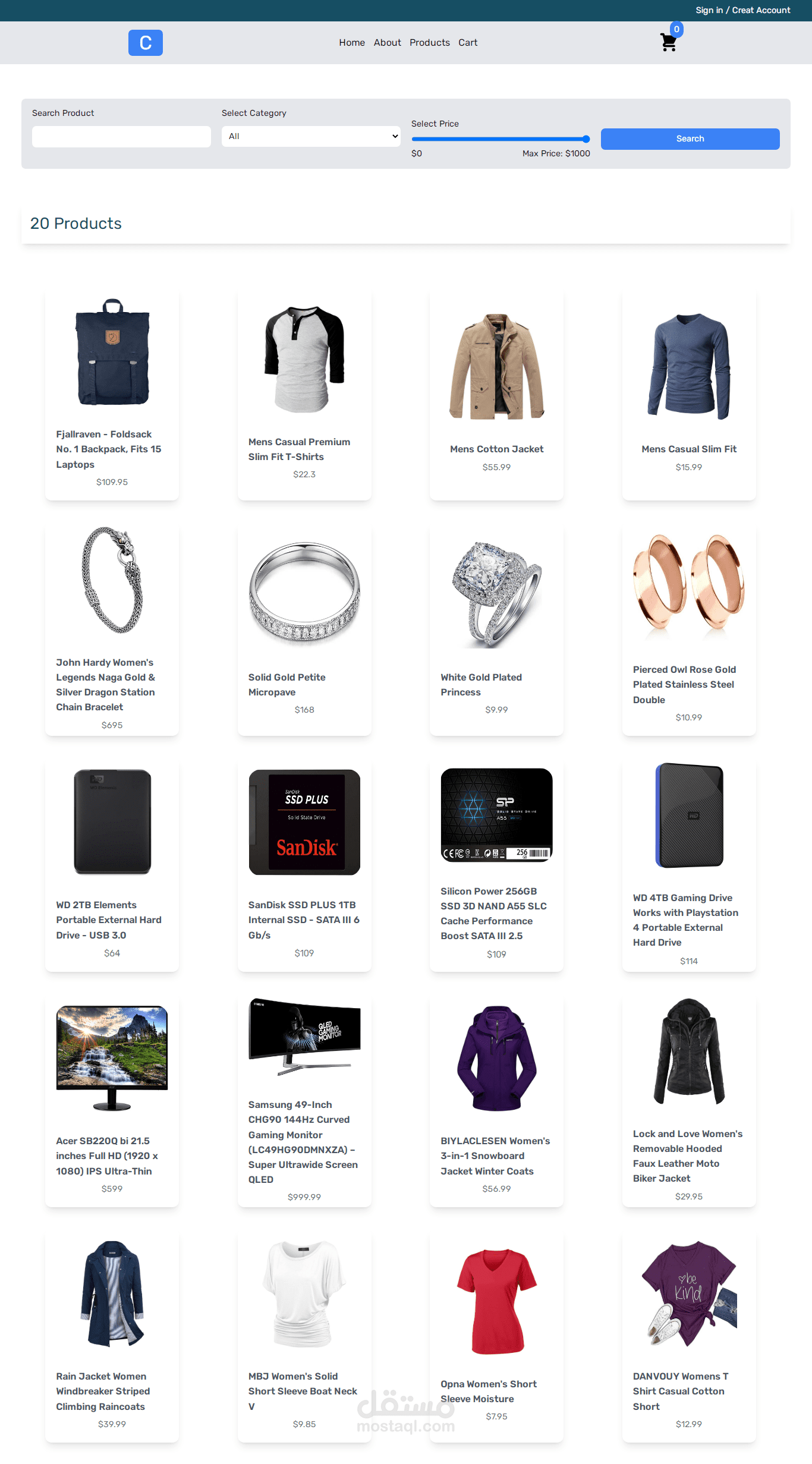 قمت بتطوير متجر إلكتروني يعتمد على بيانات خارجية من APIs، حيث يوفر تجربة تسوق فريدة. يتيح المتجر للمستخدمين إمكانية فلترة المنتجات بسهولة باستخدام خيارات البحث، السعر، والفئة.
