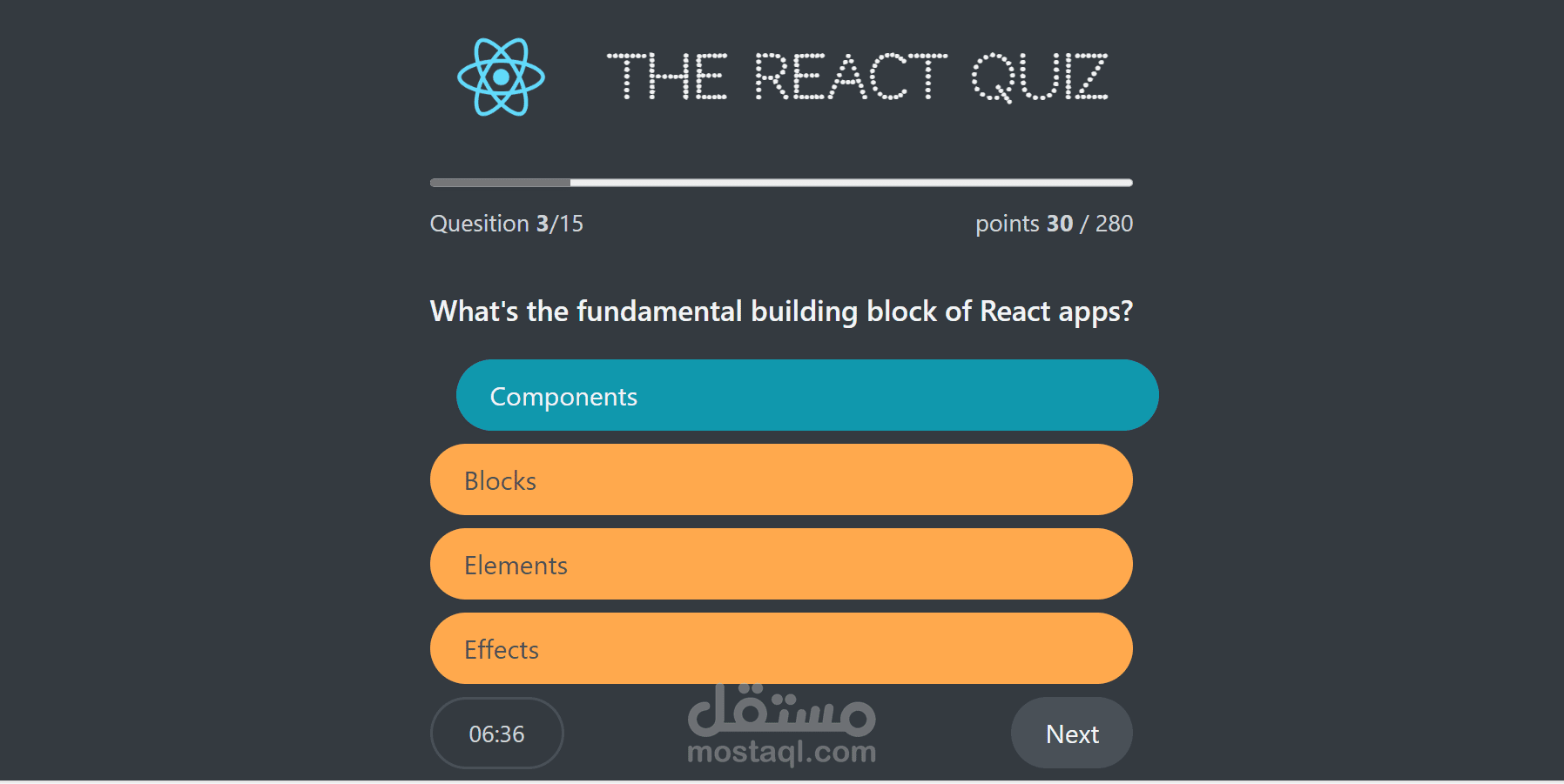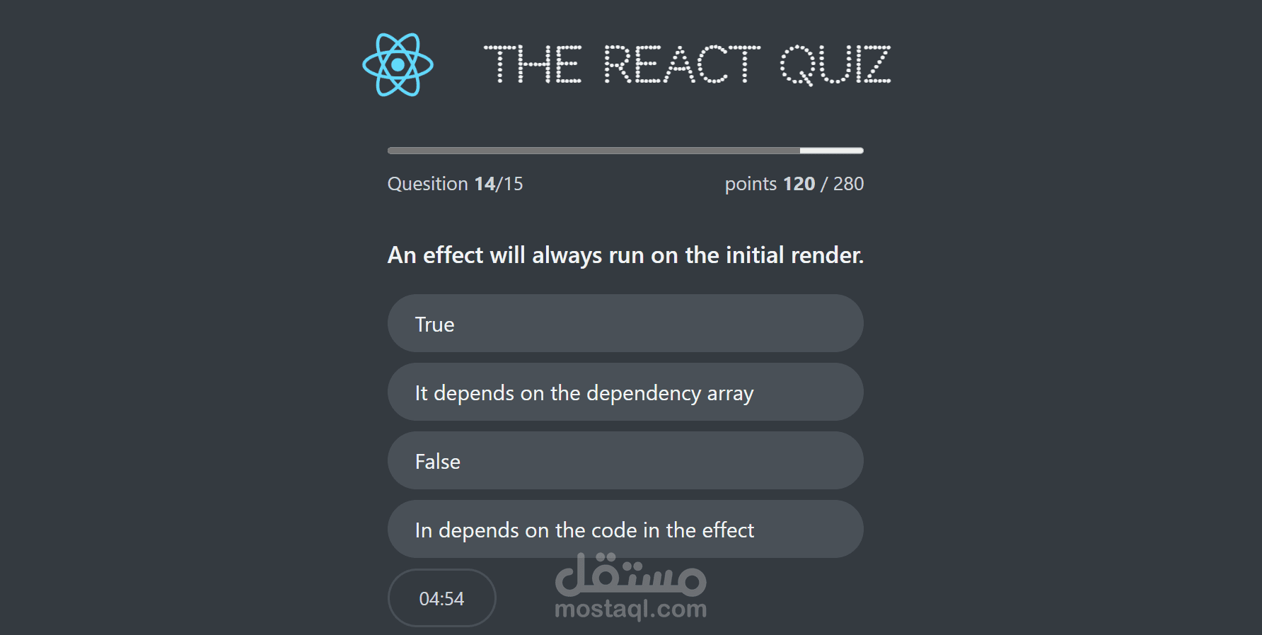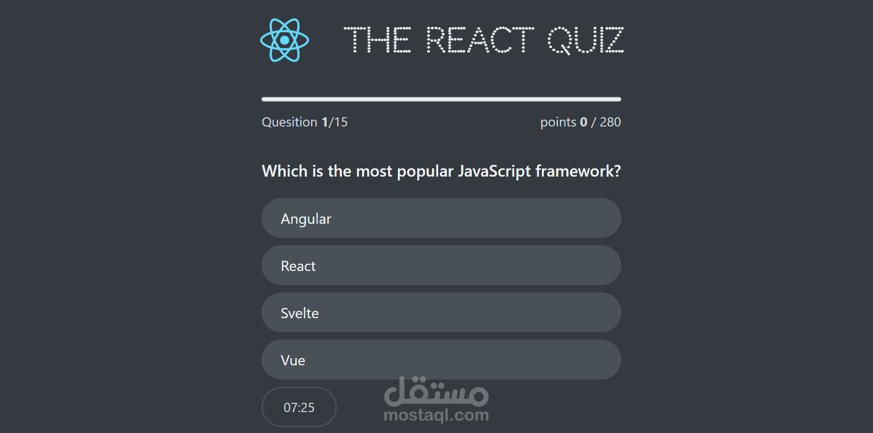 العمل عبارة عن تطبيق للاسئلة بوقت محدد