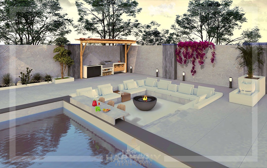 تصميم واجهات + حديقة خلفية نظام موديرن في الرياض