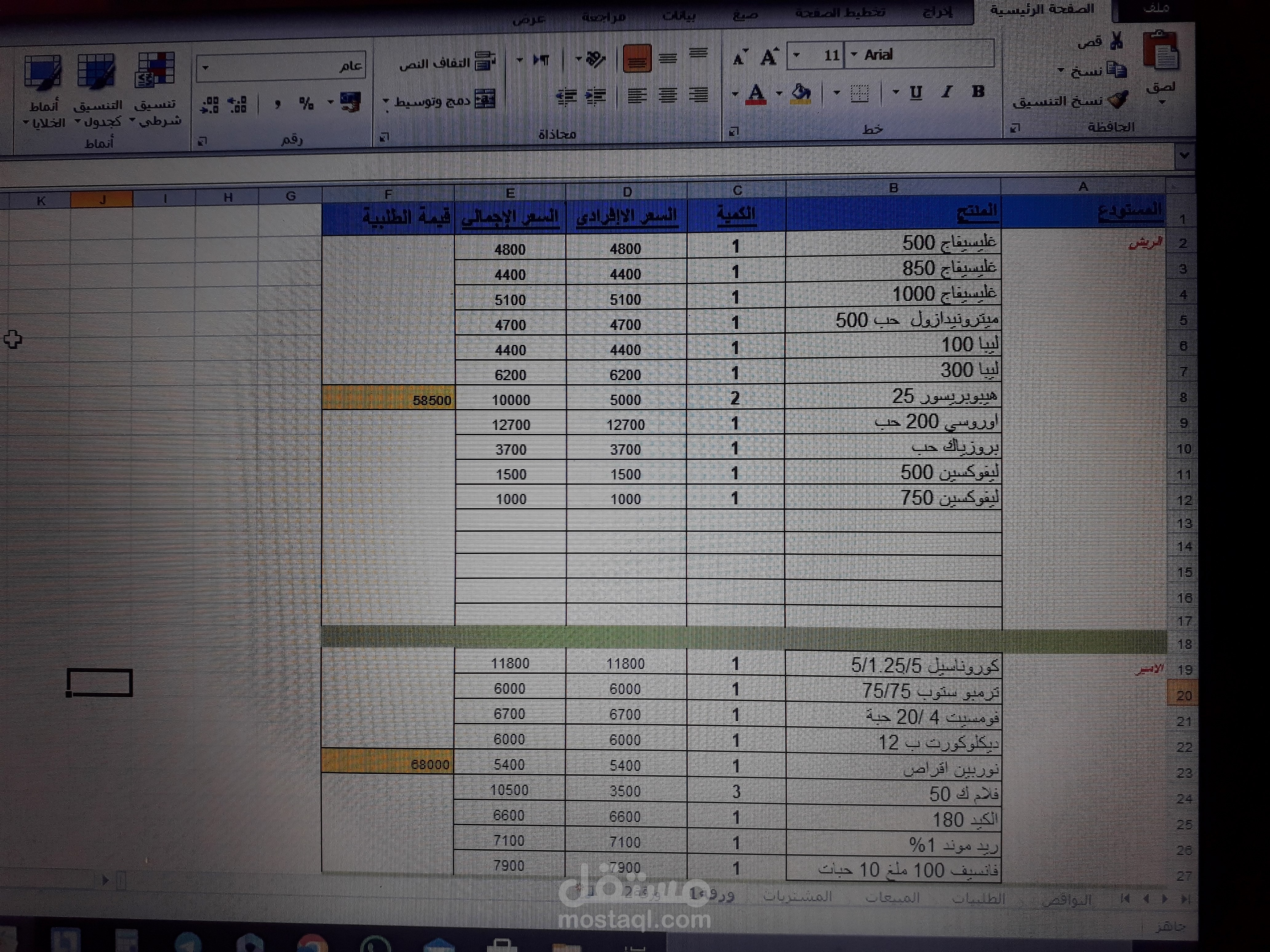 طلبيات صيدلية حسب المستودع المرد مع القيمة الكلية للطلبية .