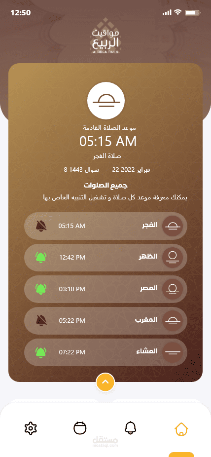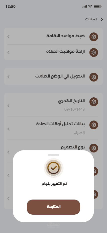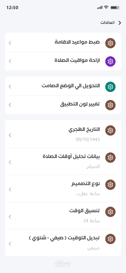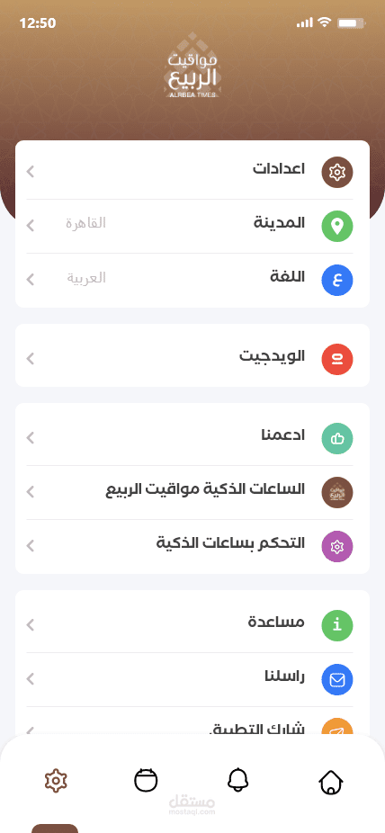 إمكانية تعديل إعدادات التطبيق مثل مواعيد الإقامة، مواقيت الصلاة، وتفضيلات التصميم.