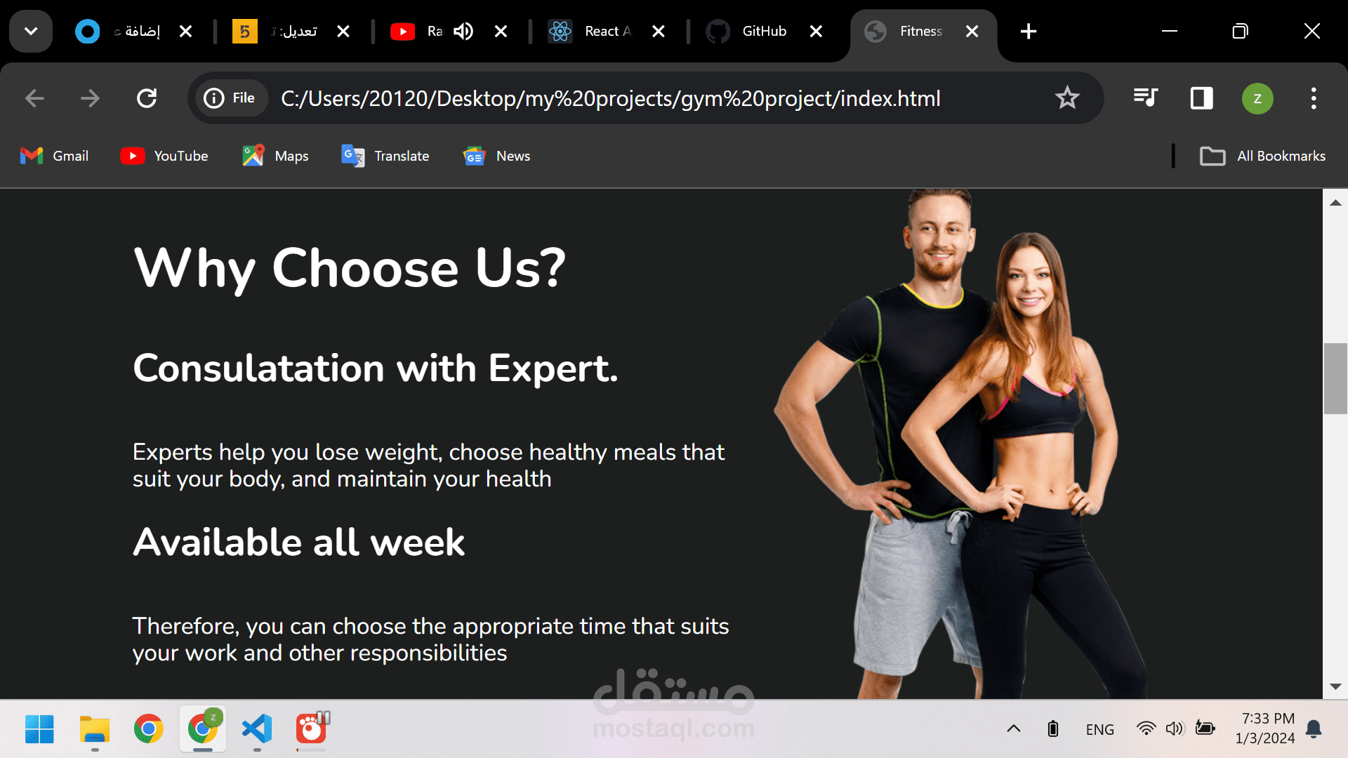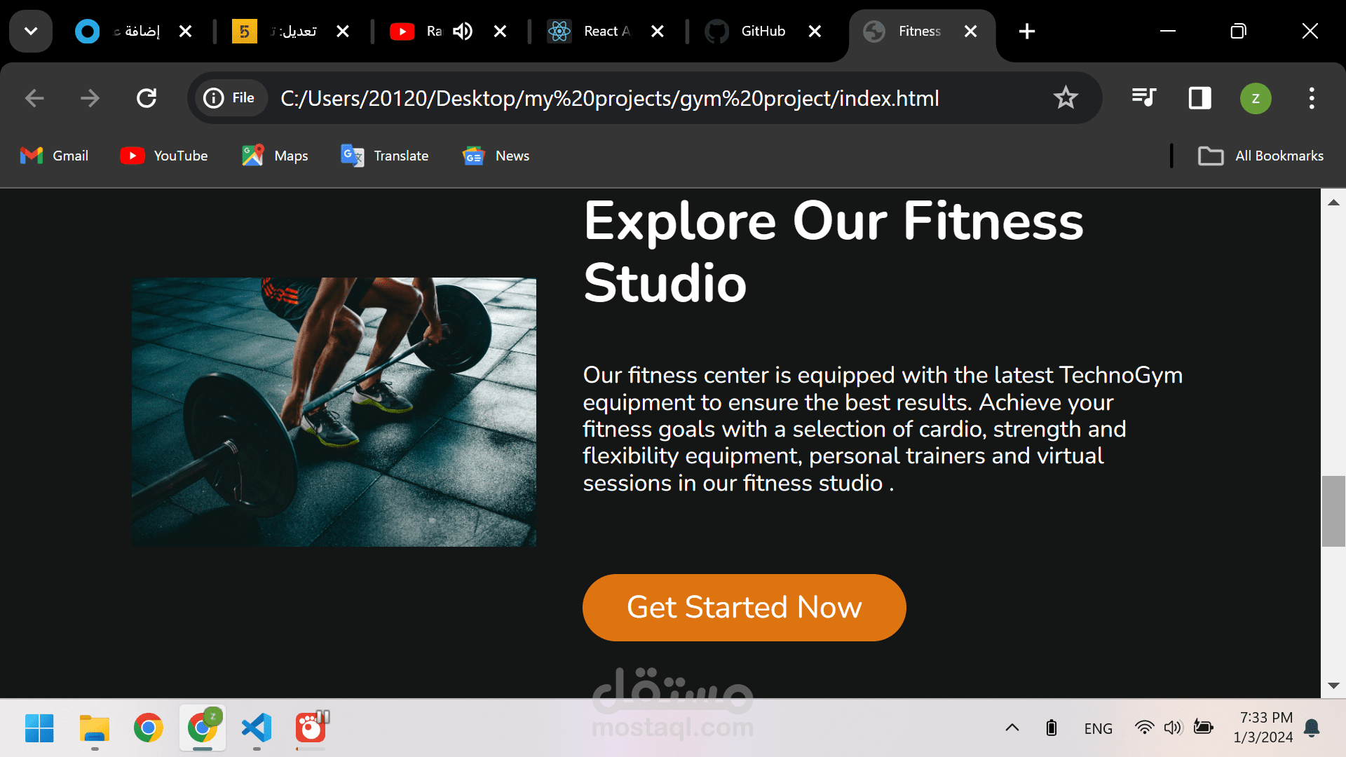 صفحه ويب لجيم مصممه ب( html5,css,javascript)