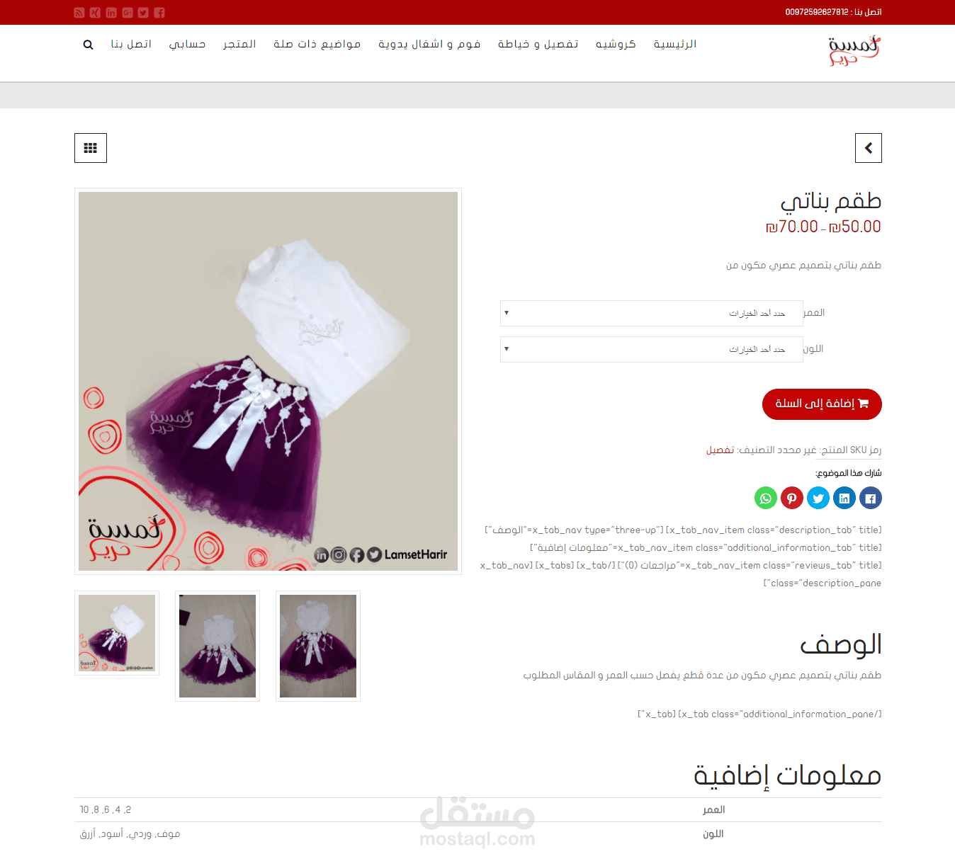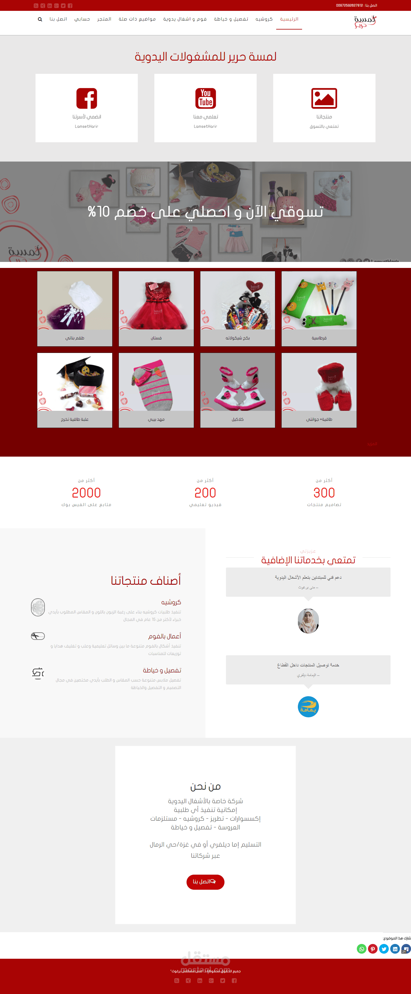 متجر إلكتروني لعرض المنتجات حيث يتم عرضها ضمن تصنيفات معينة كما و يتيح الموقع عملية الشراء حيث لكل زبون حساب خاص فيه يتم من خلاله تصفح المنتجات و معرفة المواصفات و الكميات المتوفرة من كل منتج و من ثم يتم إختيار المنتج المراد شاؤه و إضافته إلى فاتورة الزبون , المتجر خاص بمشغل للمشغولا ت اليدوية .