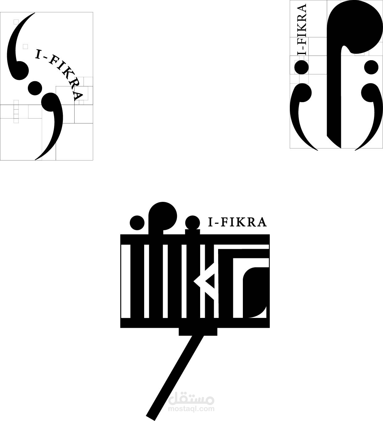 فكرة الشعار الأولى مأخوذة من سماعة الموبايل لتشكل حرف f من اسم المحل (i-fikra) وعلامة الفاصلة المنقوطة لتمثل حرفي i المحيطين بحرف f . والفاصلة المنقوطة مهمة في إحدى لغات البرمجة وتعني إنهاء الأمر فتم أخذ معناها لترمز إلى أن هذا المحل هو وجهتك الأخيرة التي ستجد فيها بكل تأكيد بإذن الله مبتغاك.