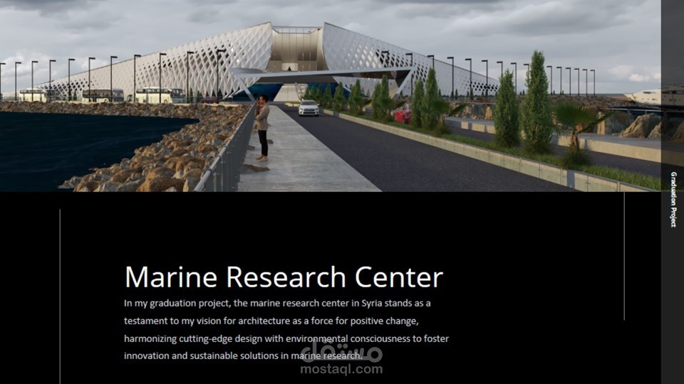In my graduation project, the marine research center in Syria stands as a testament to my vision for architecture as a force for positive change, harmonizing cutting-edge design with environmental consciousness to foster innovation and sustainable solutions in marine research.