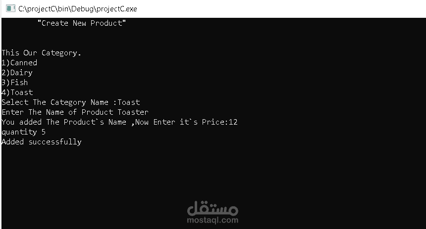 2-اضافه منتجات لكل قسم مع التاكيد من وجود القسم واضافه السعر وعددهم .