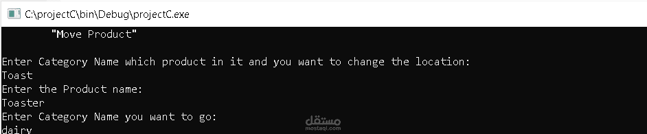 4-نقل مكان منتج من قسم لاخر مع التاكد من القسم الراسل والمرسل اليه .