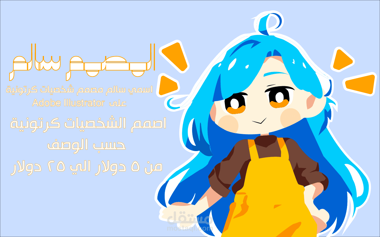مرحبا انا سالم وانا مصمم شخصيات بسيطة و كرتونية حسب الوصف الذي انت تريده.