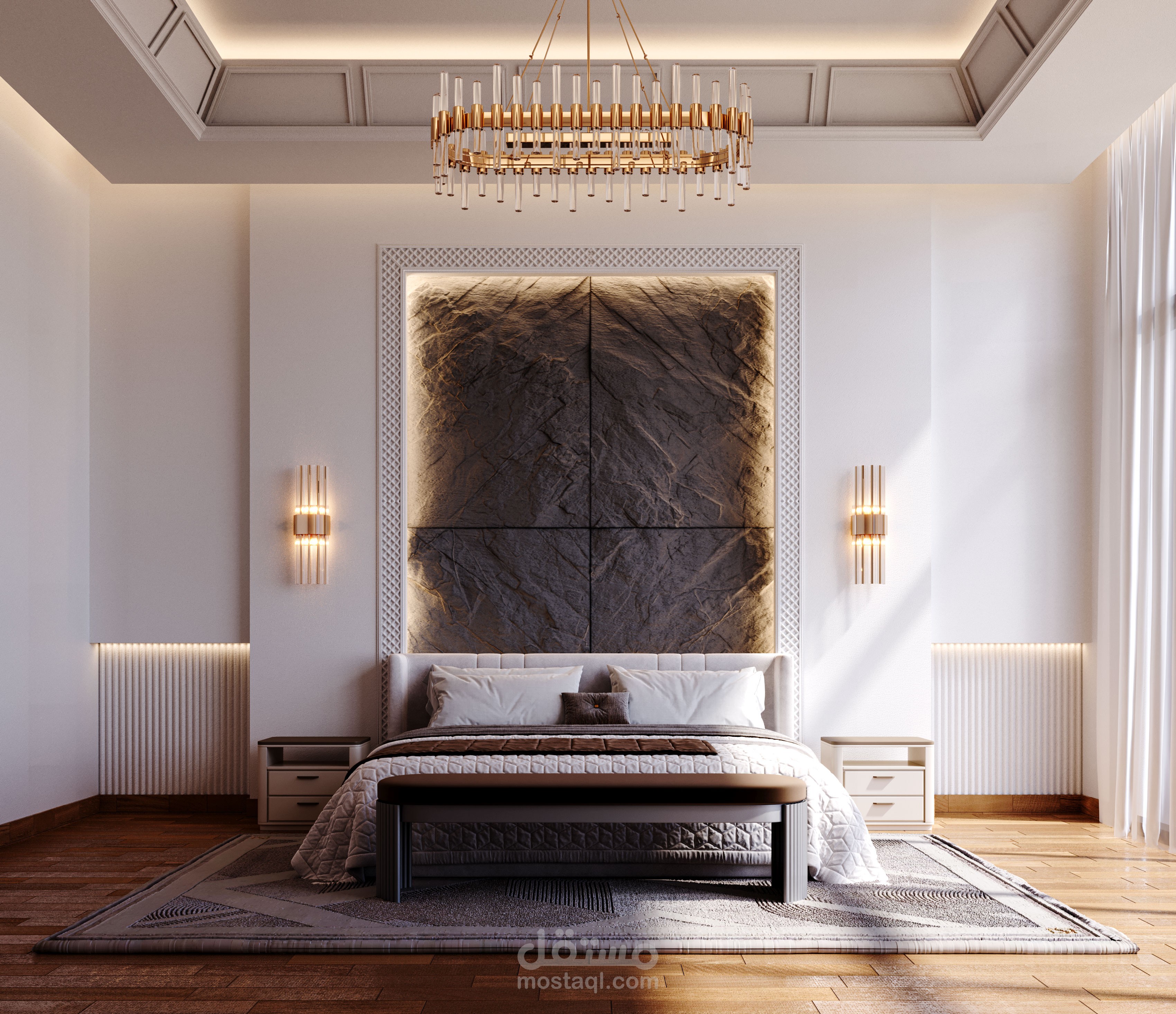 Neoclassic Bedroom Design and Render in Abu Dhabi