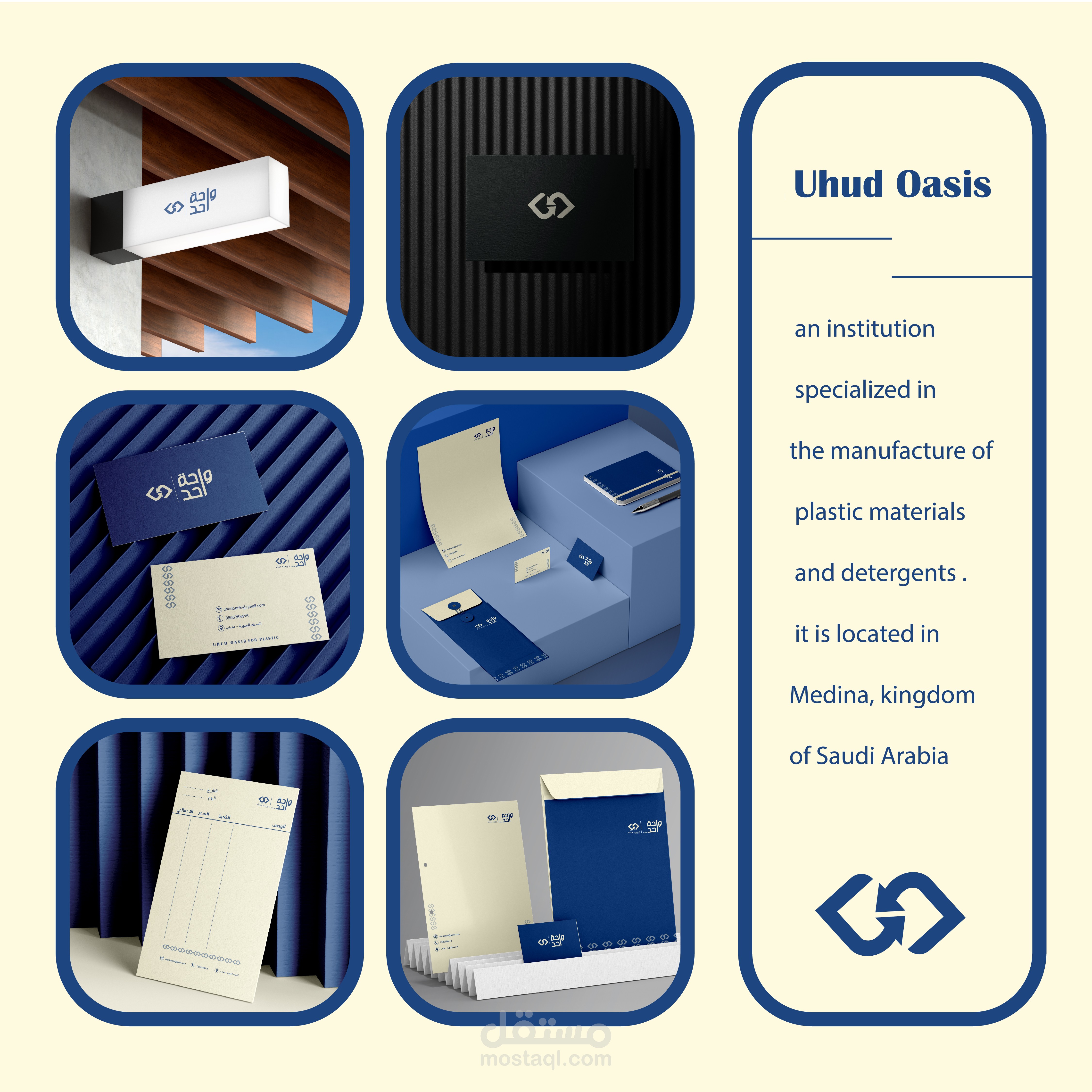 تصميم هويه بصريه _ لمصنع اعادة التدوير وصناعة البلاستيك . باسم Uhud oasis
