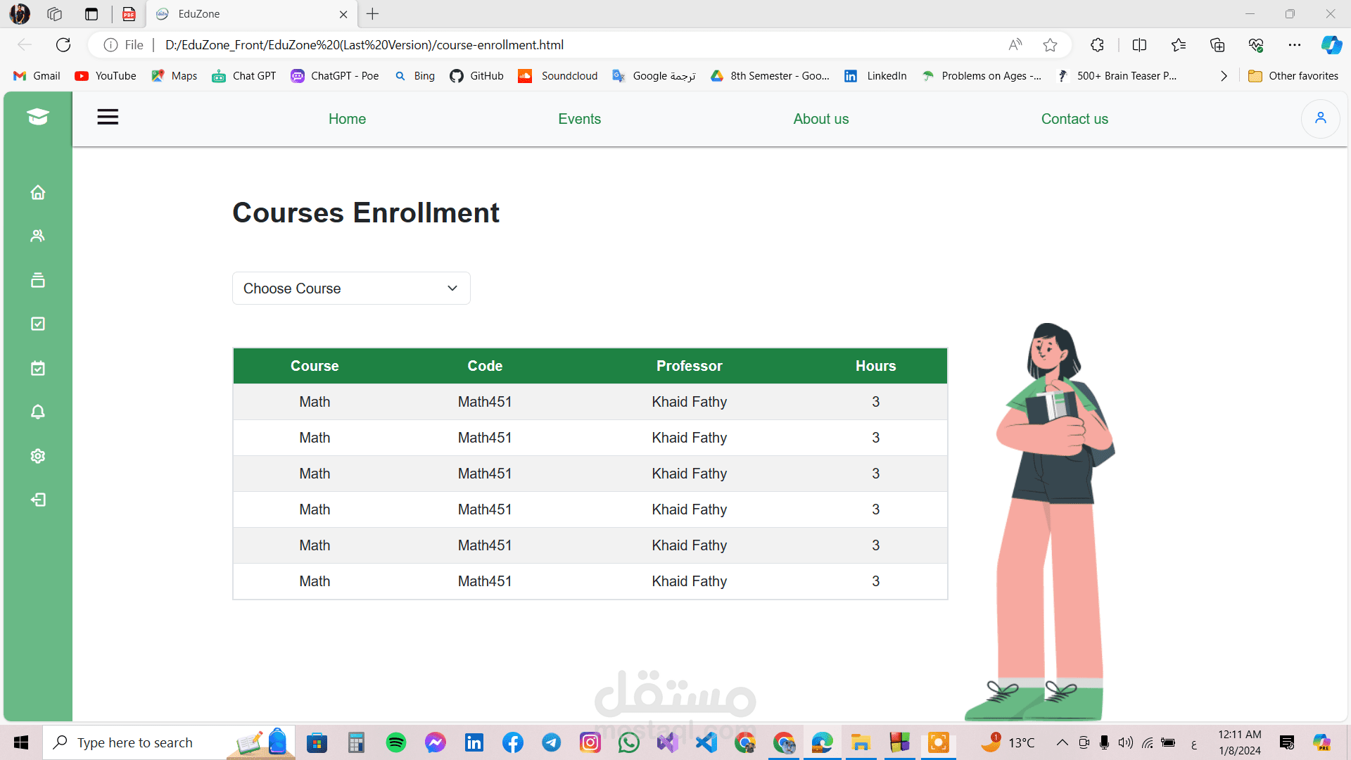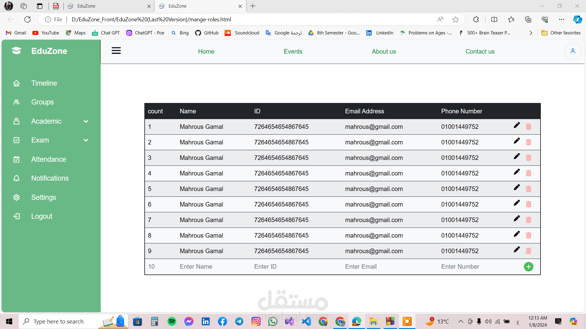 12- الجدول معملو بشكل دينامك بحيث كل فتره يتغير حتى يكون مناسب للطلاب والدكتور