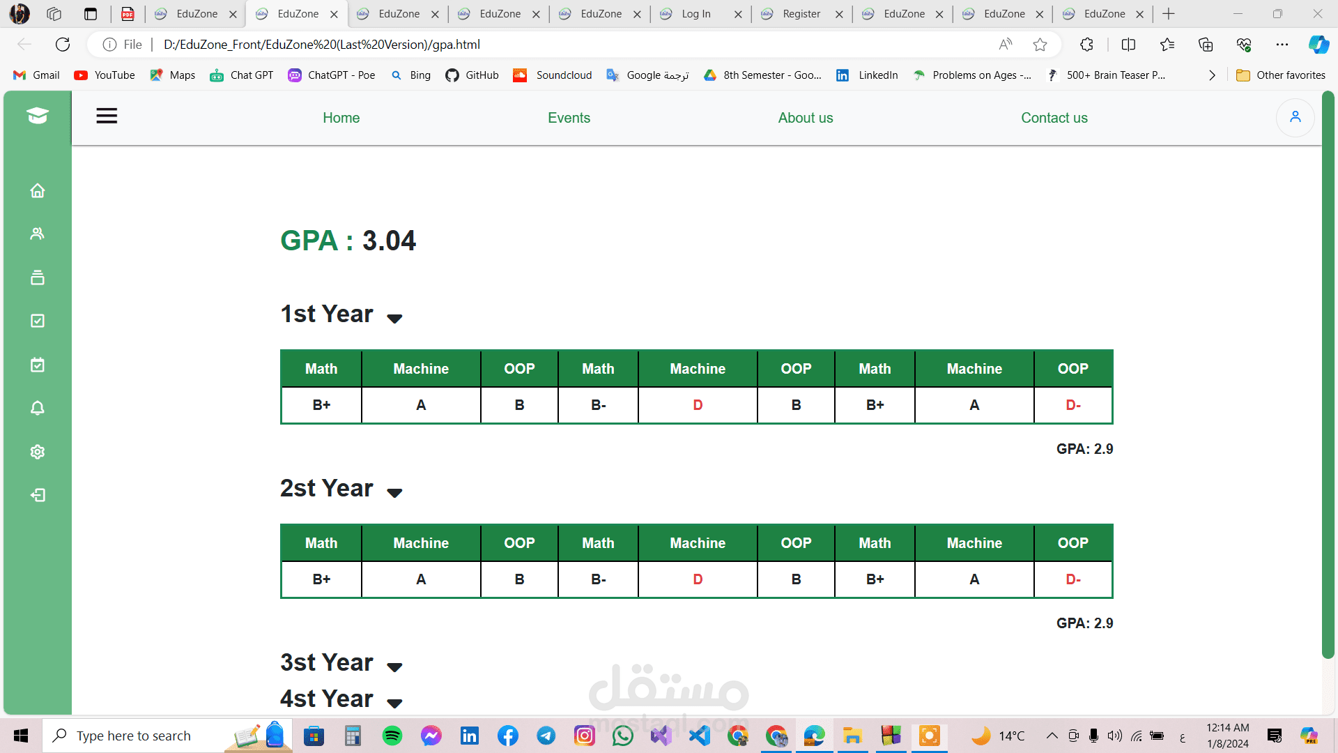 18- الموثع سهل الاستخدام ومتناسق وبه الكثير من المميزات الاخره التي تساعد في توفير بيئه مناسبه للطالب حتى يجد كل شئ يرده في مكان واحد وتعزله عن مواقع التواصل الاجتماعي وهذه النقطه الاساسيه لعمل هذا الموقع وه وتجميع جميع احتياجات الطالب في مكان واحد حتى لا يتشتت في مختلف الماوقع والتطبيقات