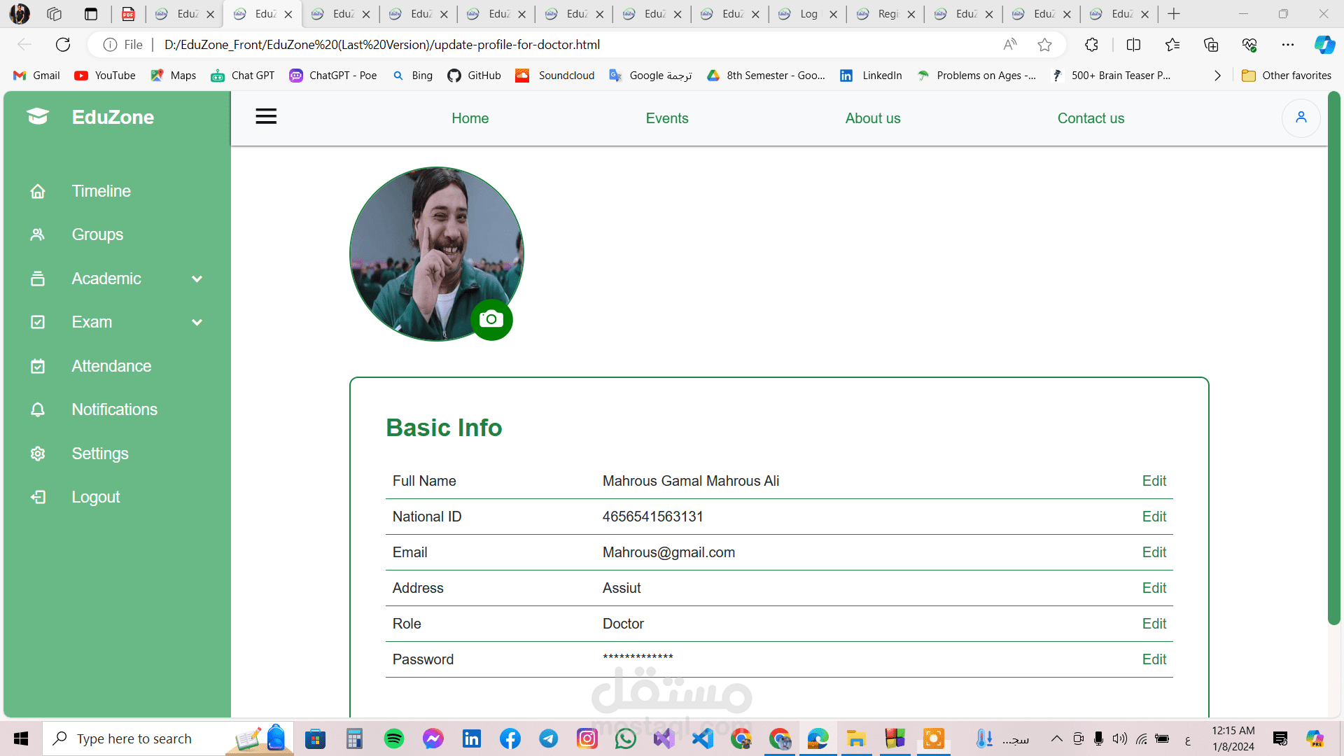13 - الطالب له صفحه خاصه به بحيث يمكن تعديل بياناته او متابعه اي ماده ومعرفت درجات اي ماده