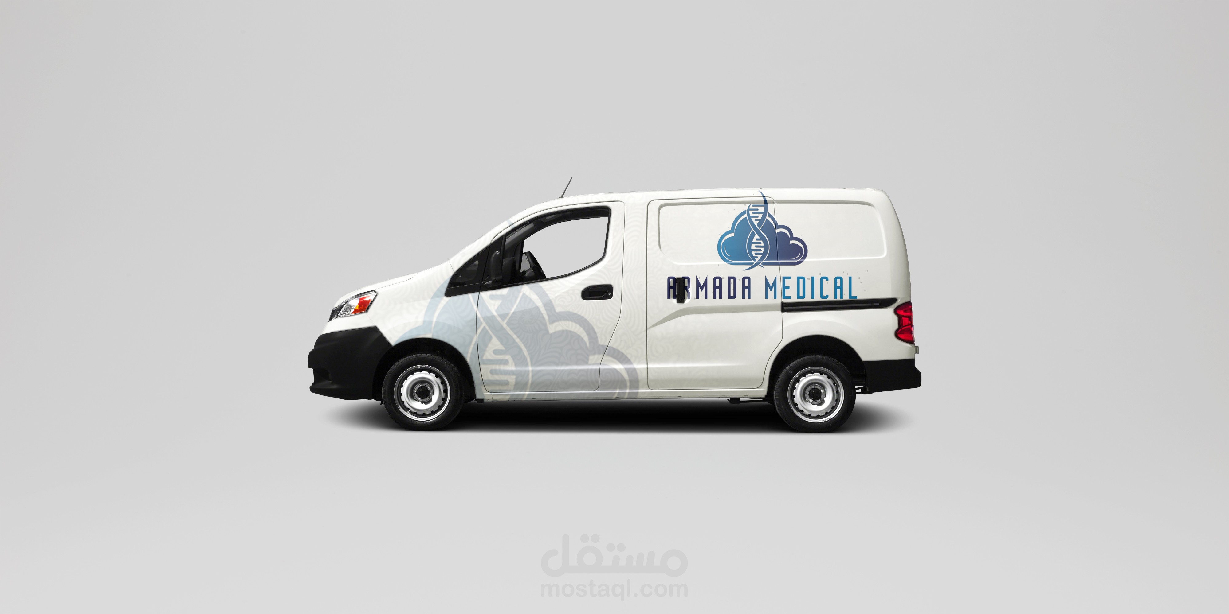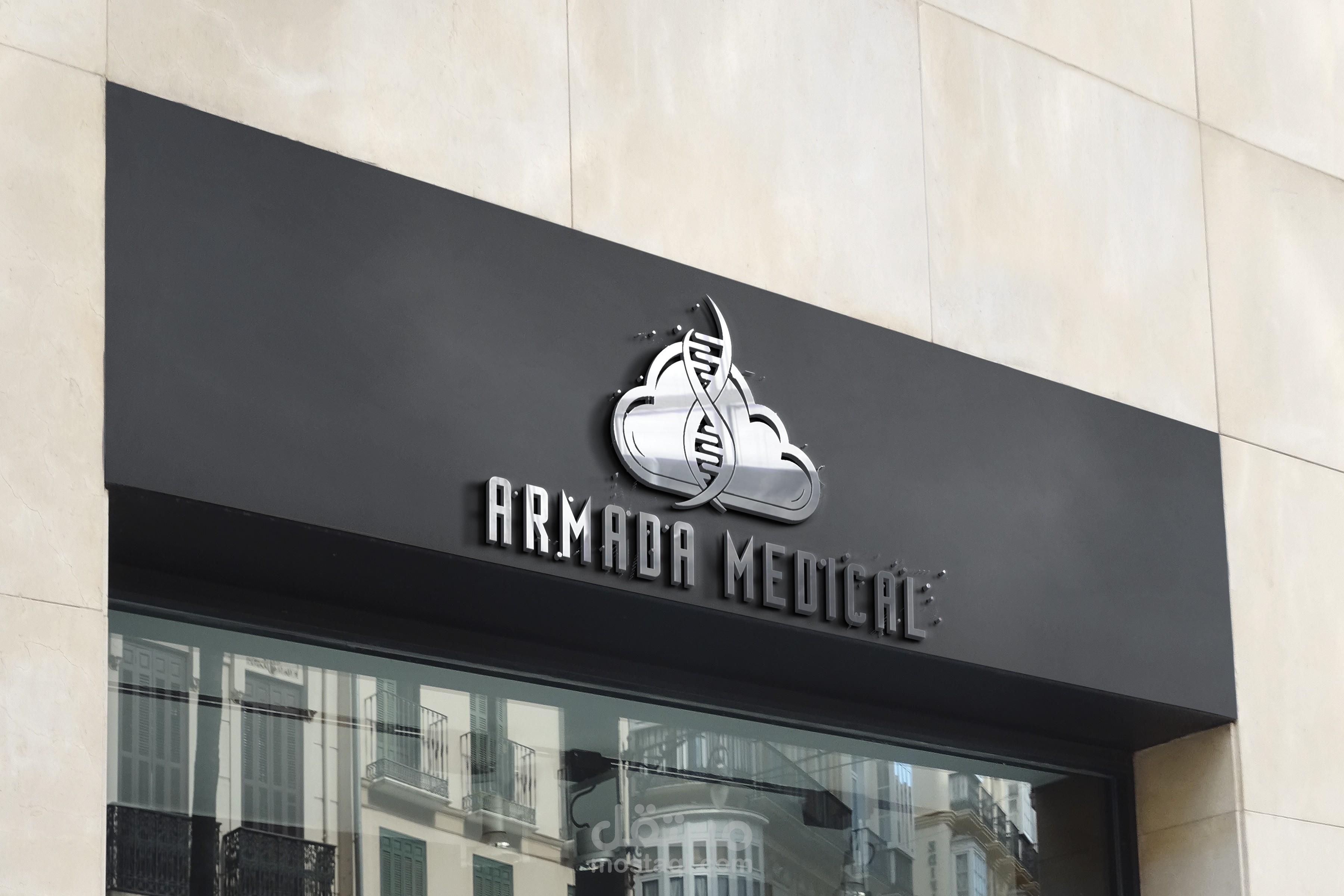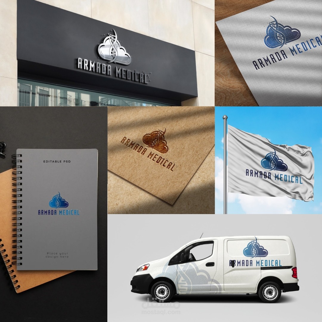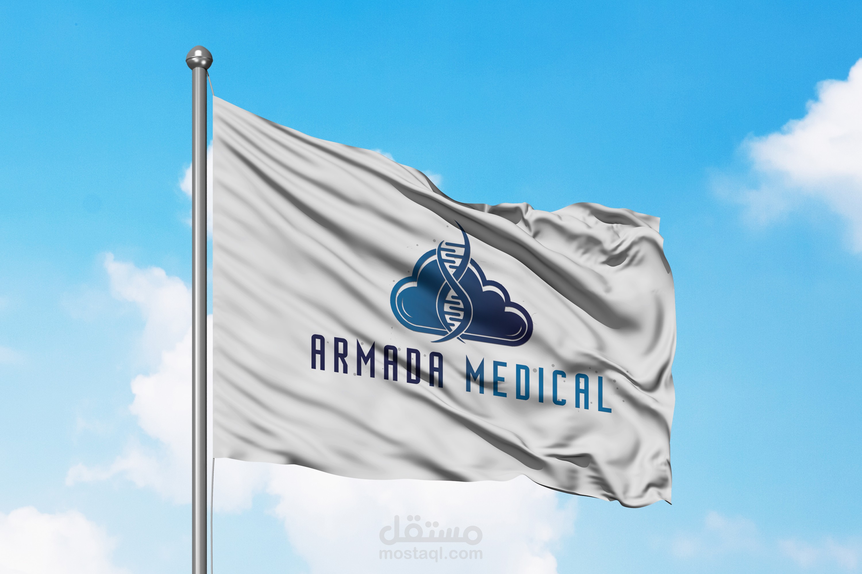 تصميم شعار لشركة متخصصة في المعدات الطبية والاعمال التجارية ، يتالف الشعار من سحابة مع إضافة نسيج DNA الحمض النووي مع اللون الأزرق المتدرج