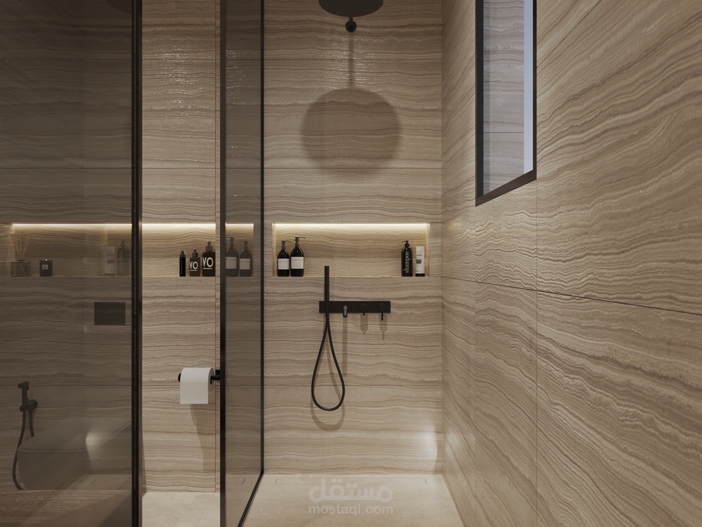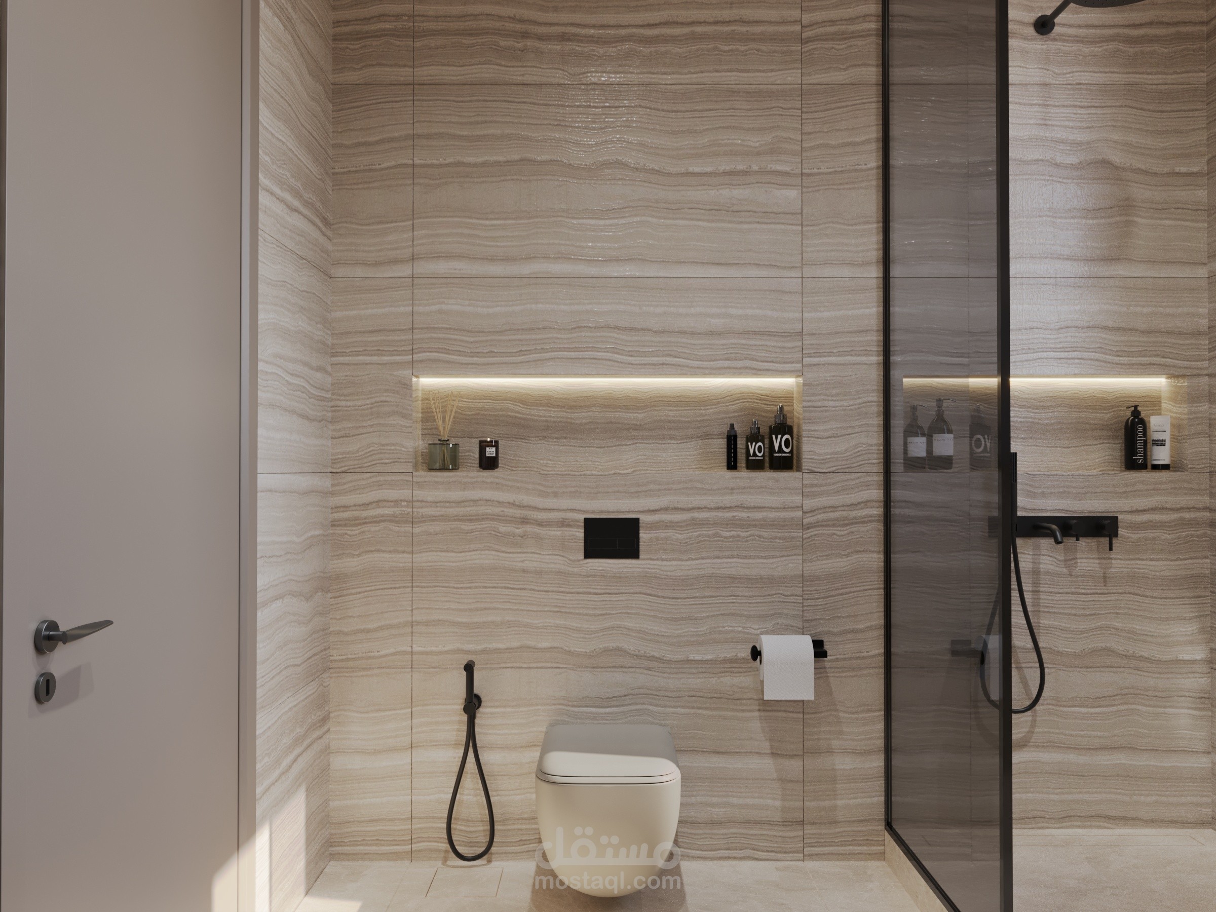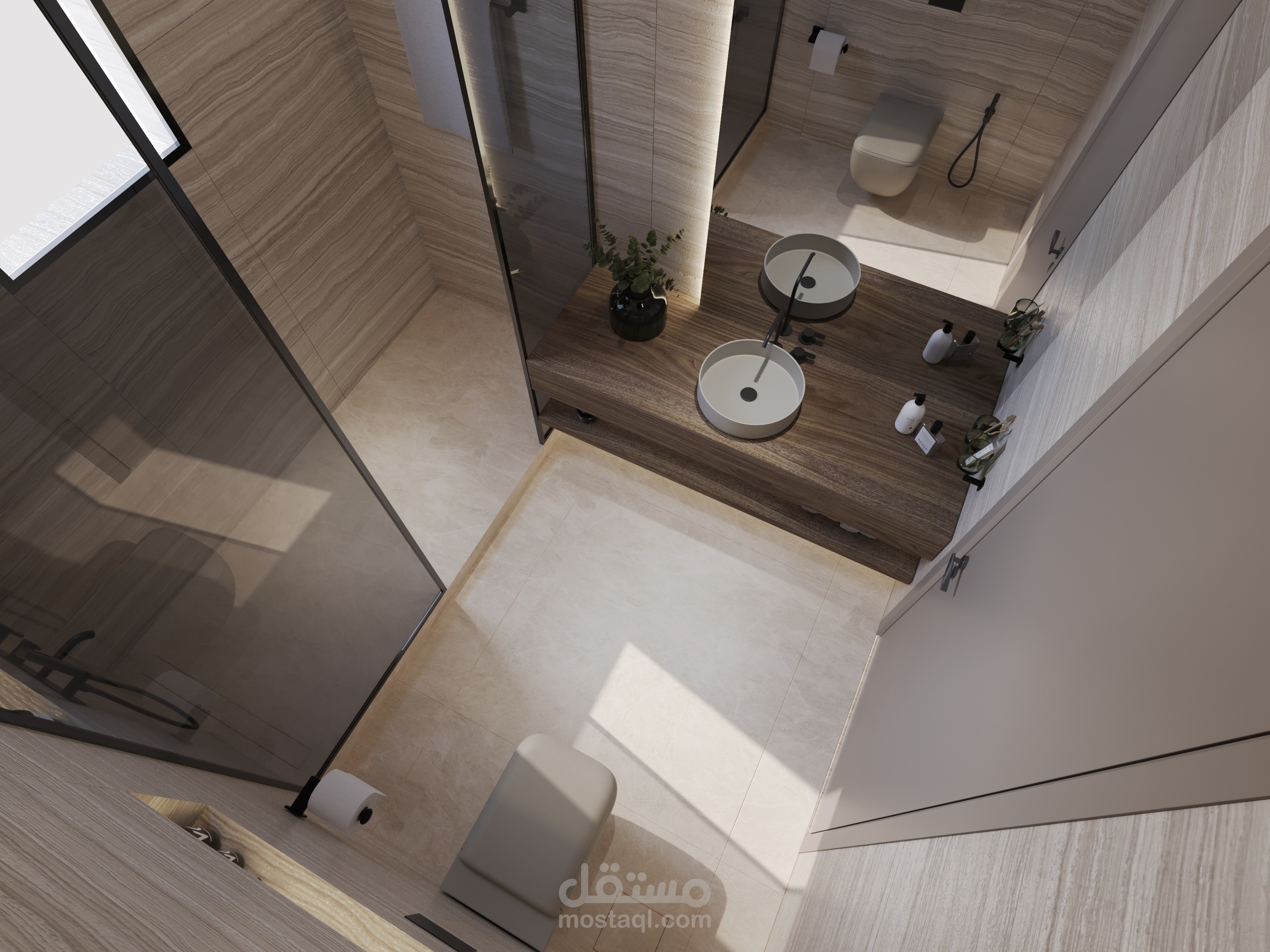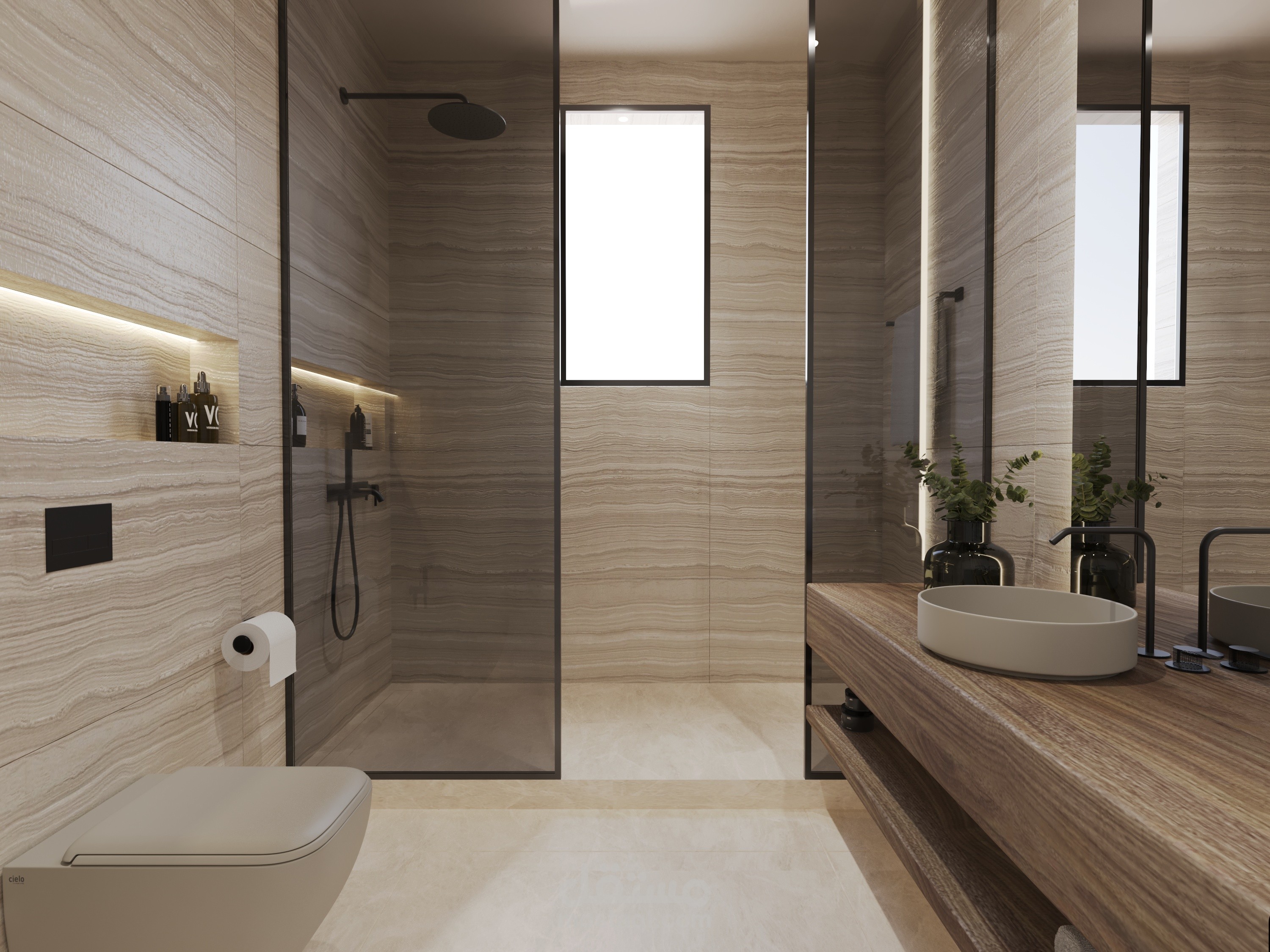 Modern bathroom in natural colors.