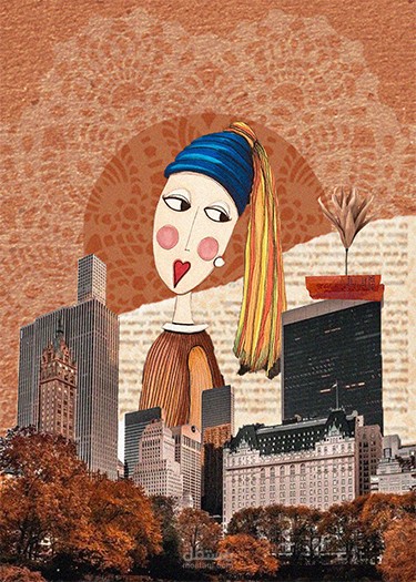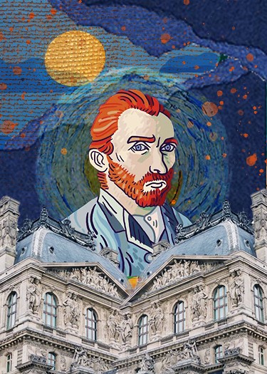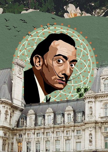 this is cards for an art exhibtion contains illustrated photos of famous artists and famous art works done by collage style