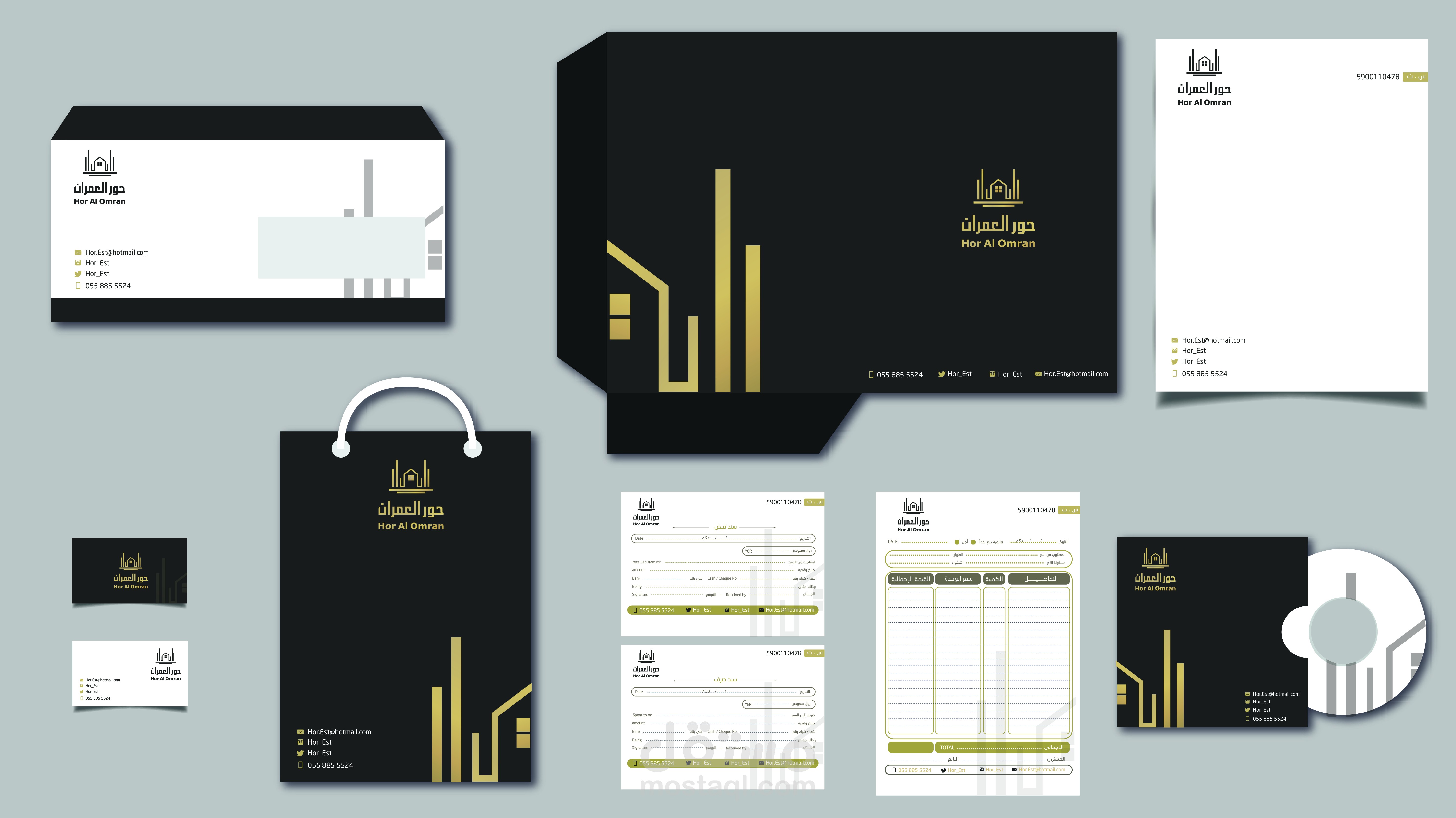 تصميم هوية متكالمة للوجو لشركة حور العمران بداية من اللوجو وحتى الهوية الكاملة