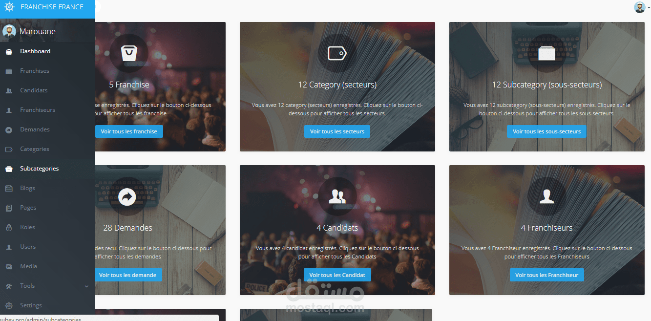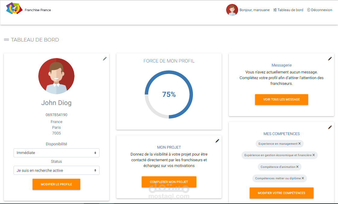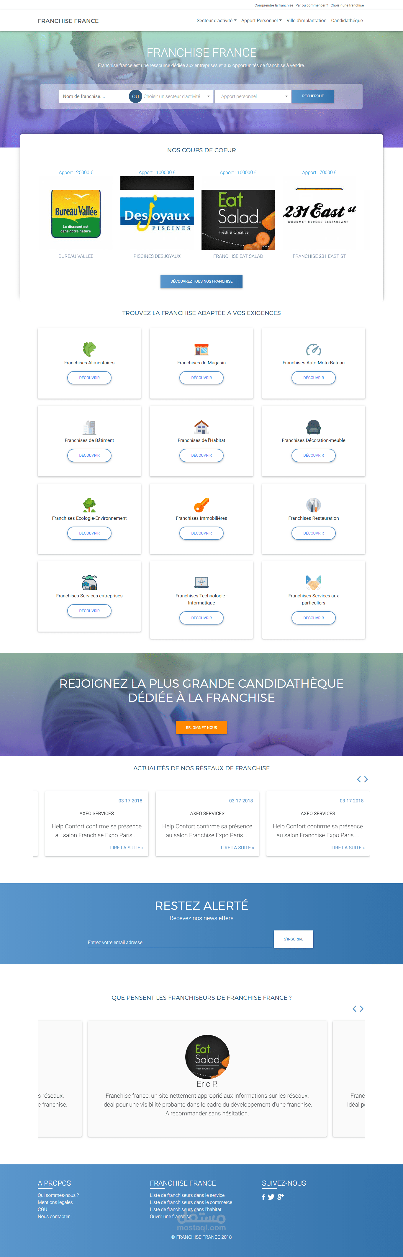 لقد نجحت في انشاء منصة ويب لأحد عملائي مخصصة لشركات الامتياز ، وهو ما يسمح لشركات الامتياز بالبحث عن المرشحين و شركات الامتيازات الأخرى من أجل التعاون معها.