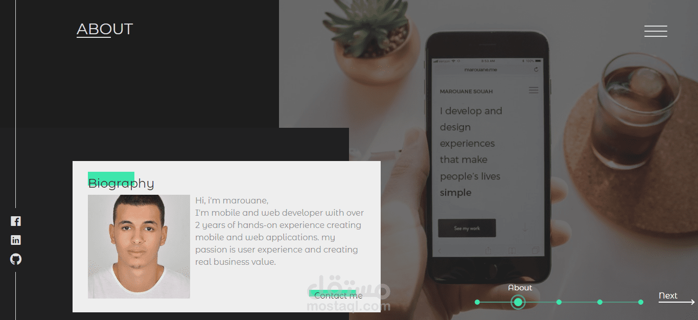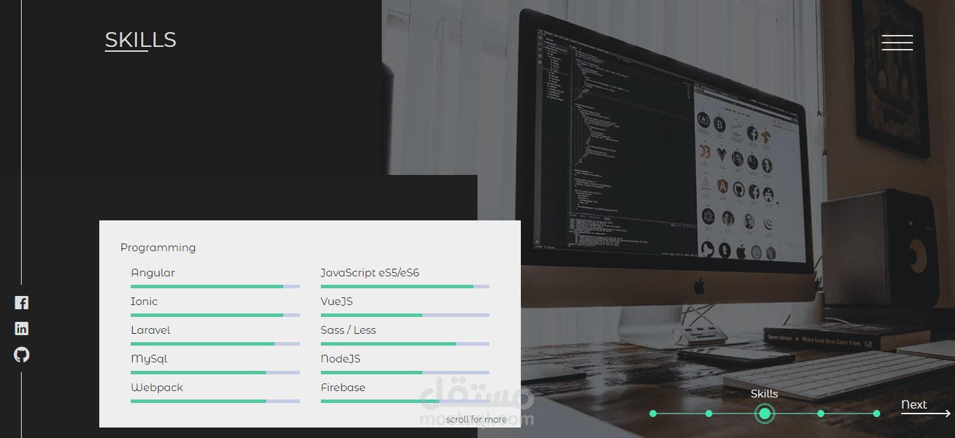 لقد نجحت في بناء موقعي الشخصي باستخدام Angular 5 في تطوير الواجهة الأمامية و Laravel لتطوير الخلفية.