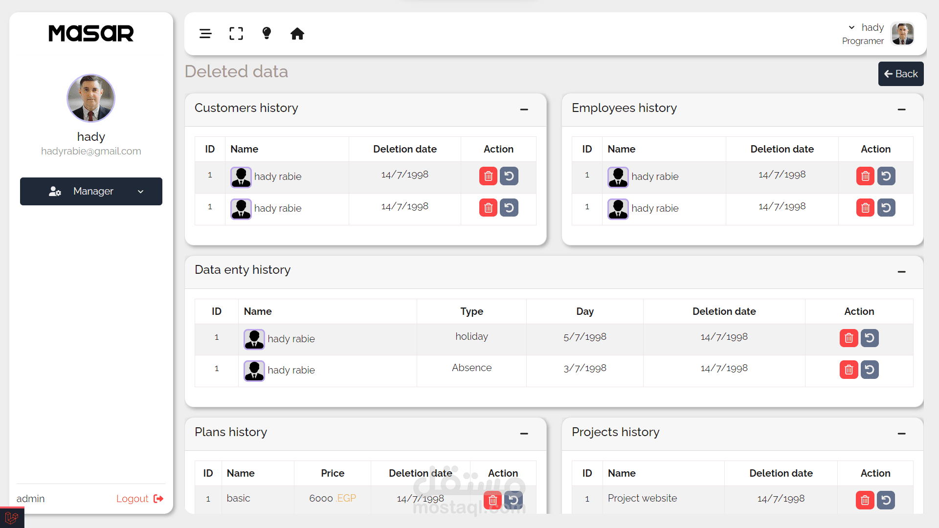 - يحتوي على جميع المحذوفات وإمكانية استرجاعها.