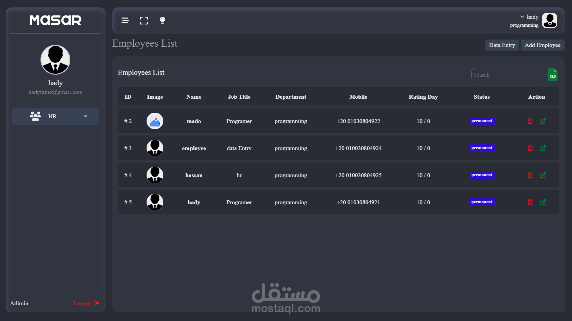 - صفحة عرض جميع الموظفين.