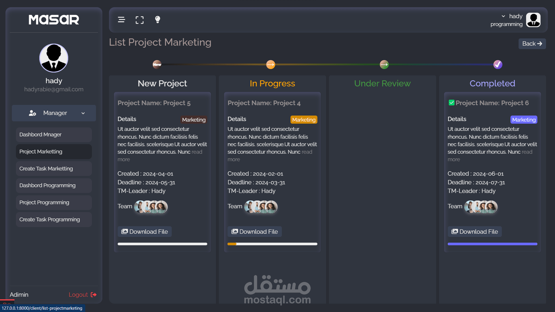 3. المشاريع المنتهية ليتم مراجعتها من قبل المدير.
