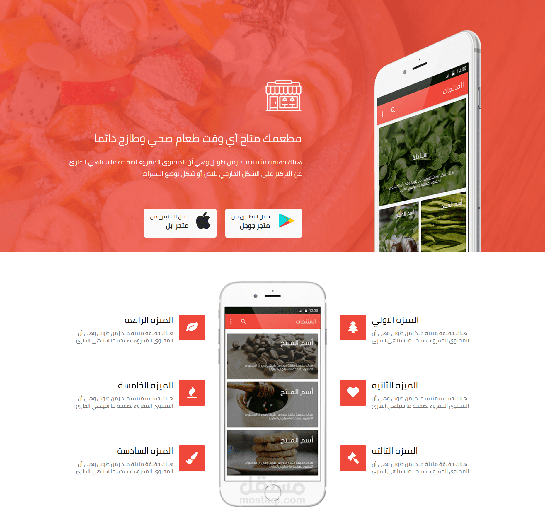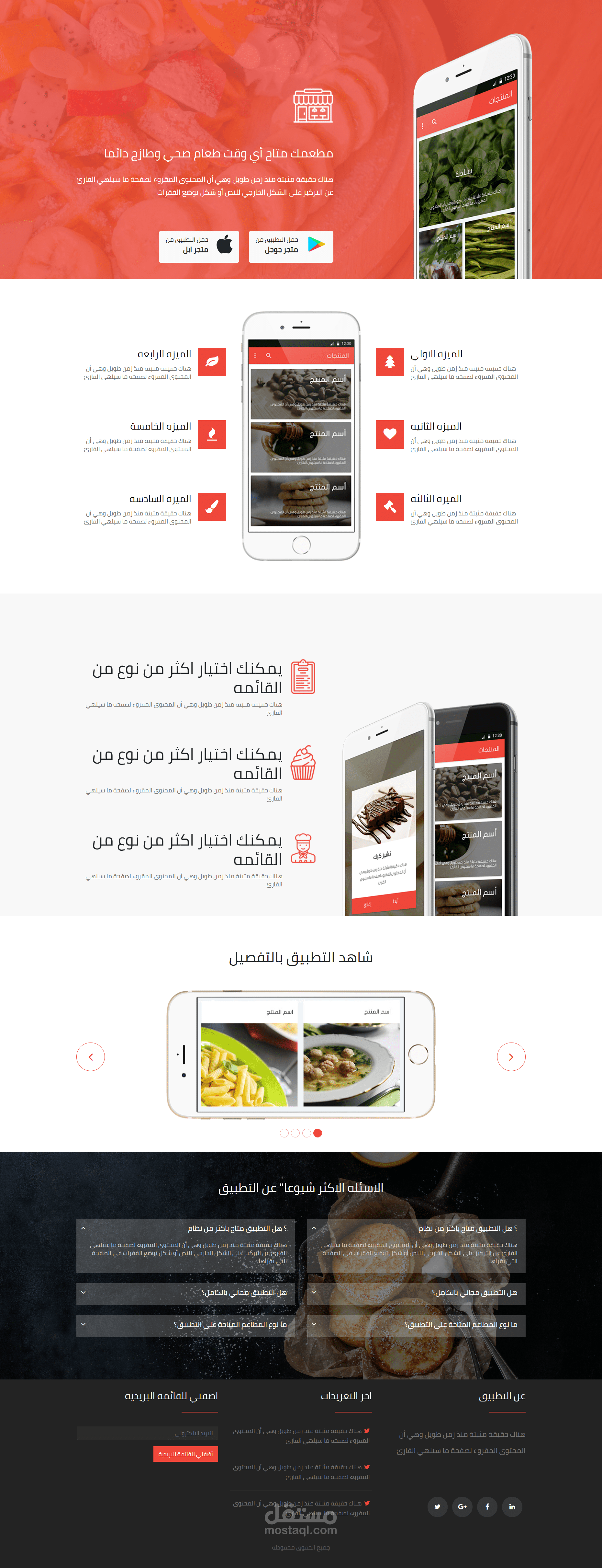 تتكون صفحه الهبوط من 3 sections