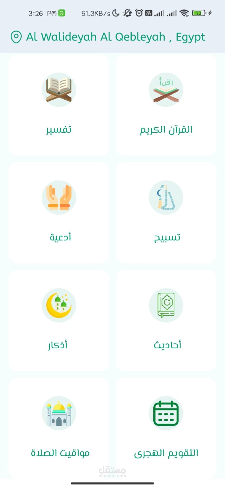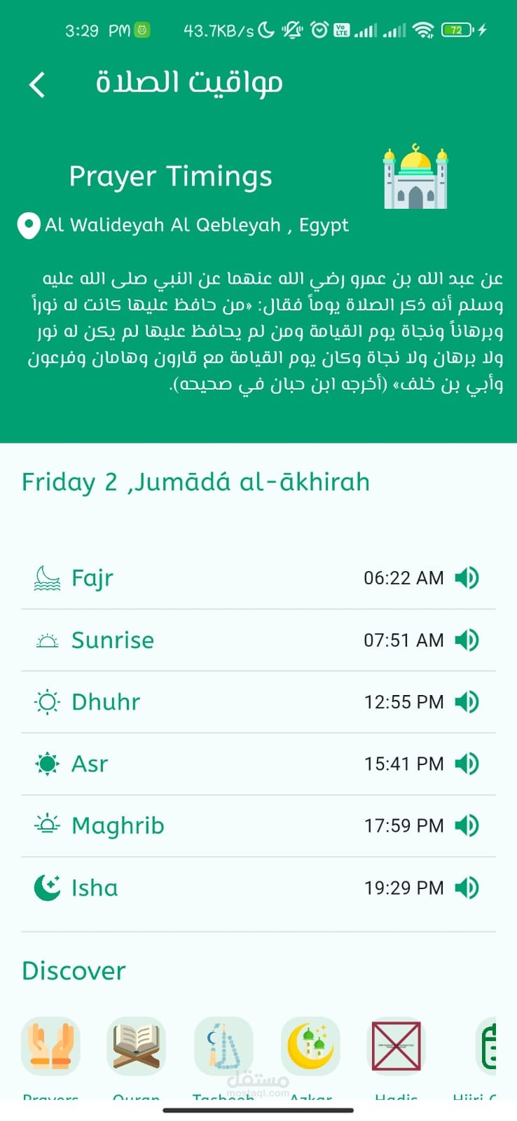 مواقيت الصلاة والأذان بناءا علي الموقع