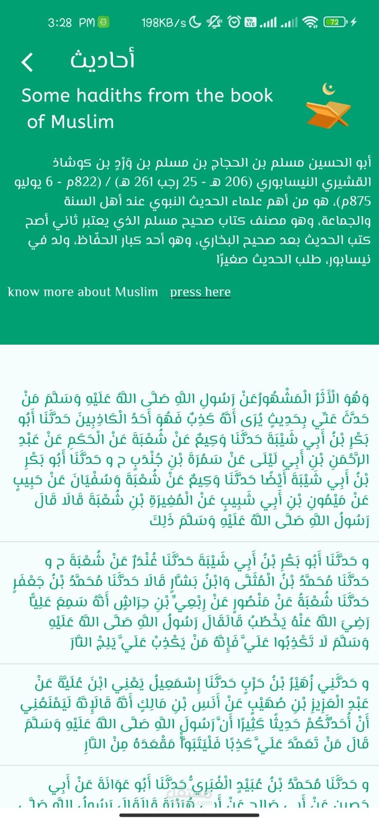 الأحاديث النبوية الشريفة.