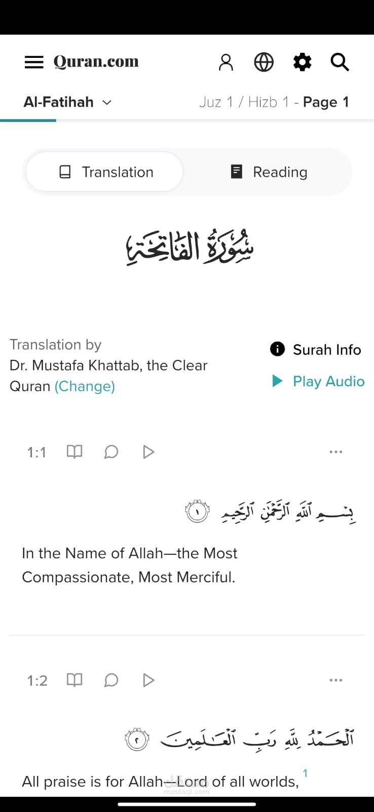يتضمن تطبيق لاطلاع على تفسيرات متعددة للقرآن الكريم