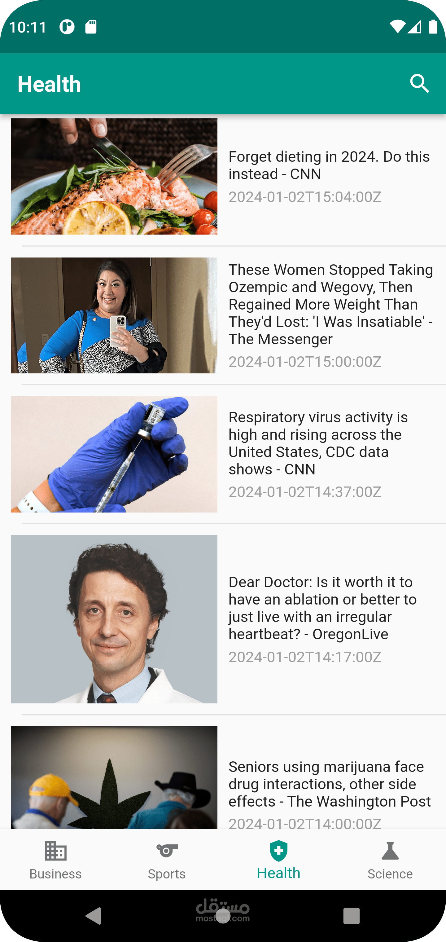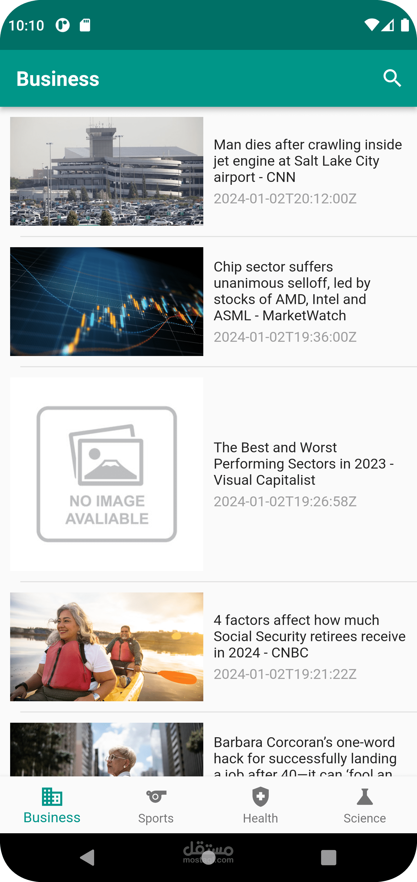 عرض أخبار الأعمال والرياضة والصحة والعلوم