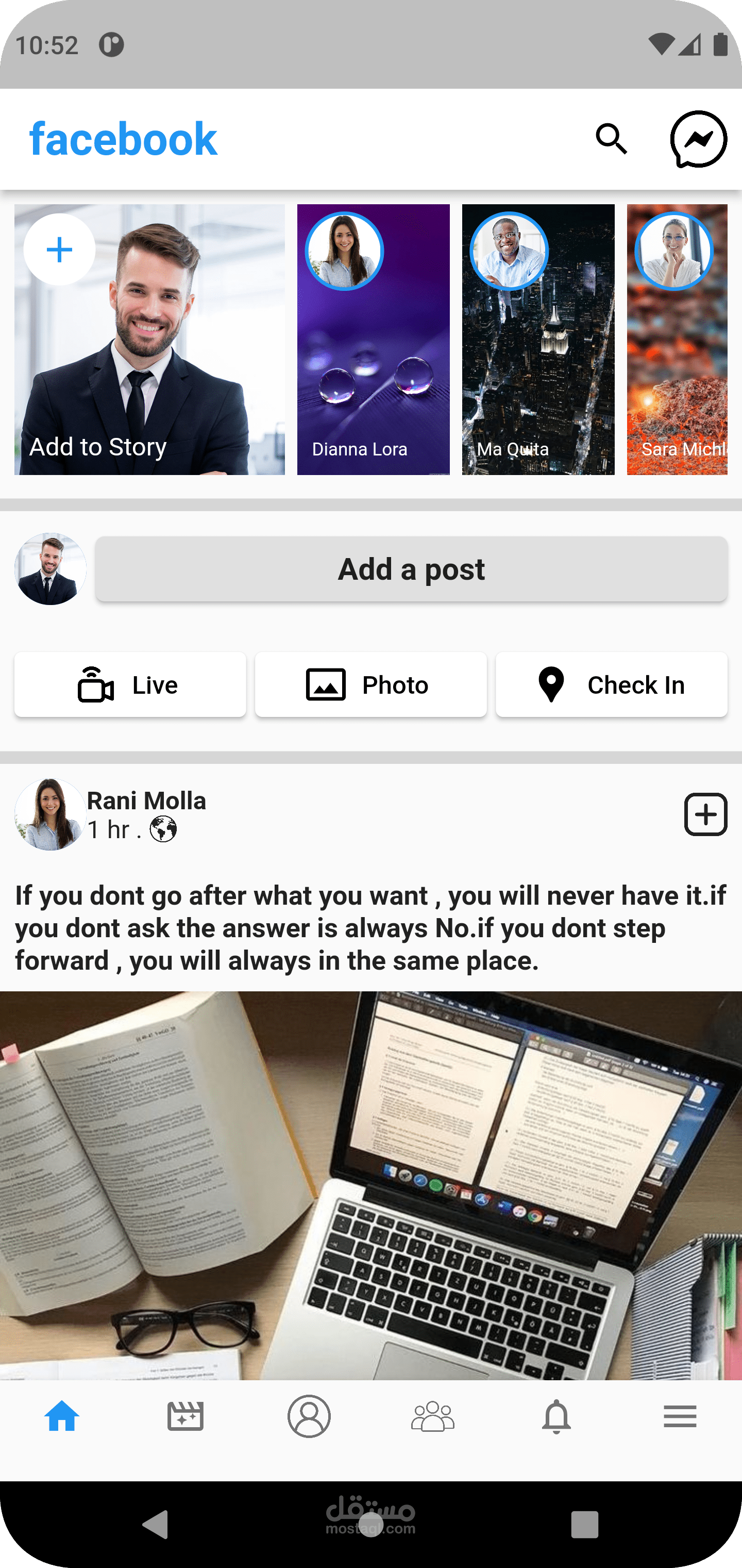تصميم واجهات المستخدم لبعض التطبيقات مثل facebook , instagram , whatsapp , youtube