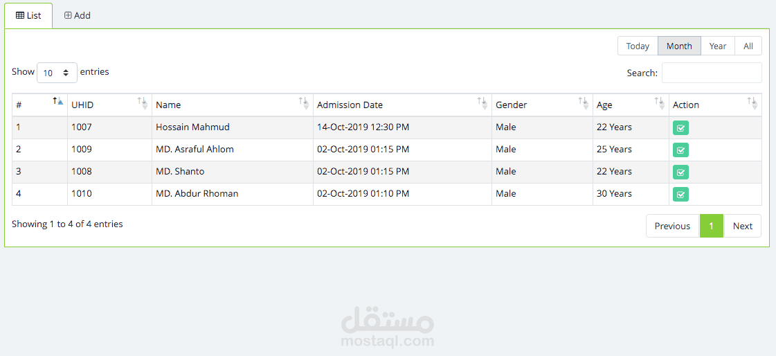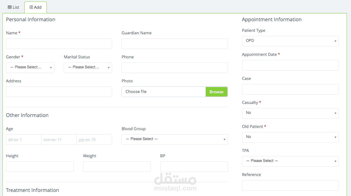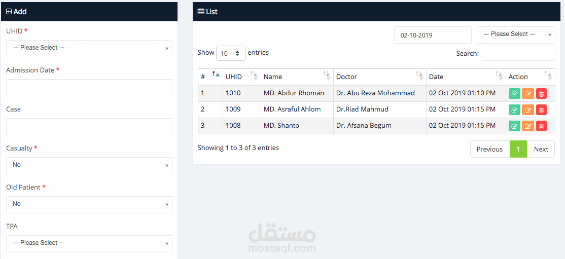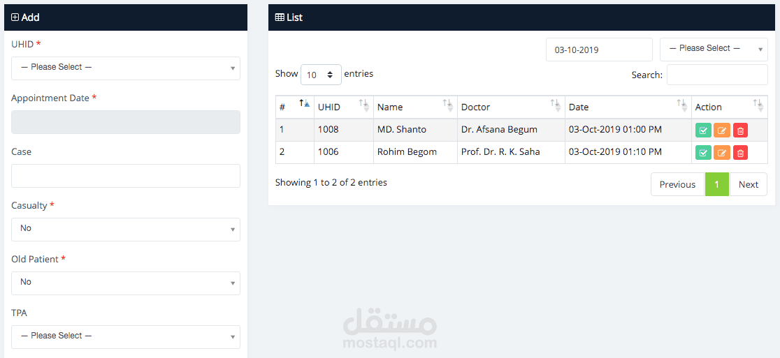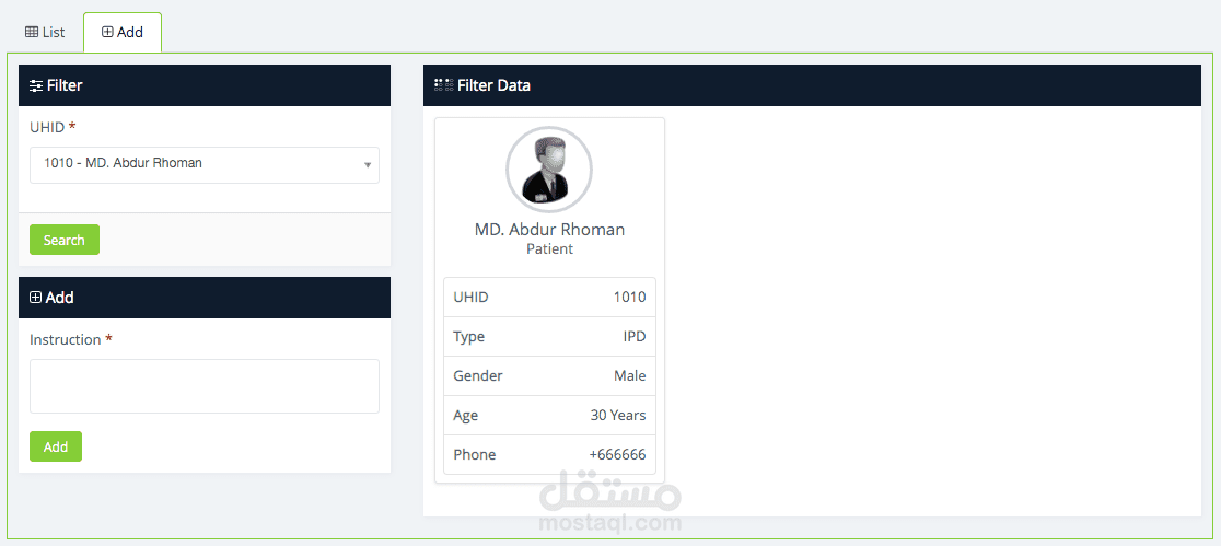 إدارة ومتابعة جميع معلومات المريض عبر خاصية المريض، وكذلك إضافة موعد أو قبول من خلال هذه الميزة