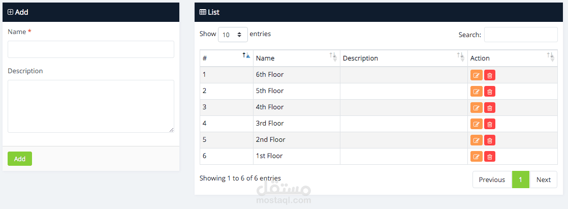 يمكن للمسؤول إضافة كل الطوابق في المستشفى، وهو مجرد سجل لطابق المستشفى