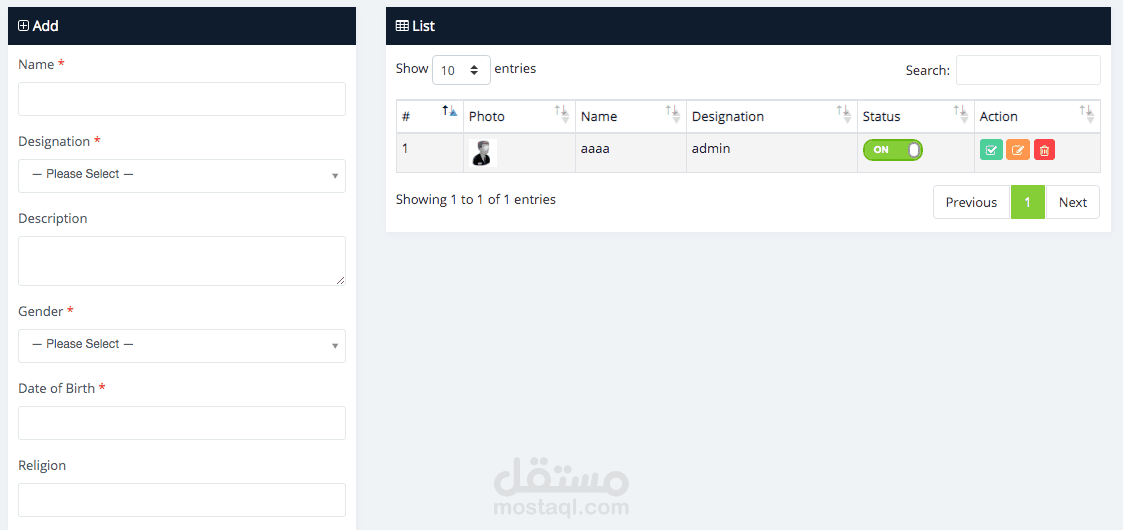 الموظف هو جزء من إدارة الموارد البشرية في هذا النظام، لذلك يمكن للمسؤول إنشاء موظف، بعض الموظفين طبيب، محاسب، فاتورة، صيدلي الخ