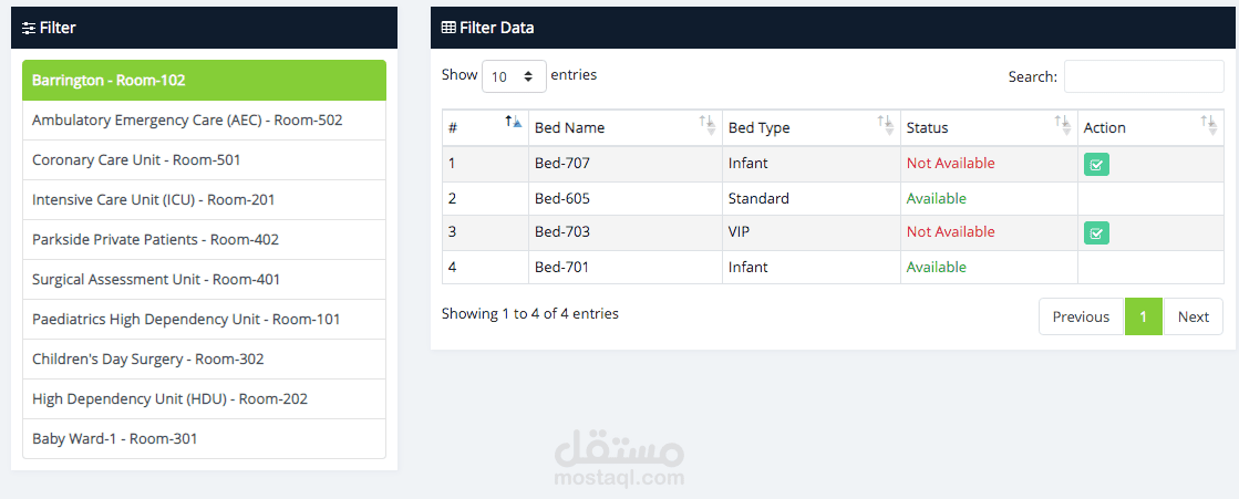 تعد إدارة السرير ميزة رائعة للمستشفى، حيث يمكن للمسؤول بسهولة العثور على السرير المتاح والاطلاع على هذه التفاصيل
