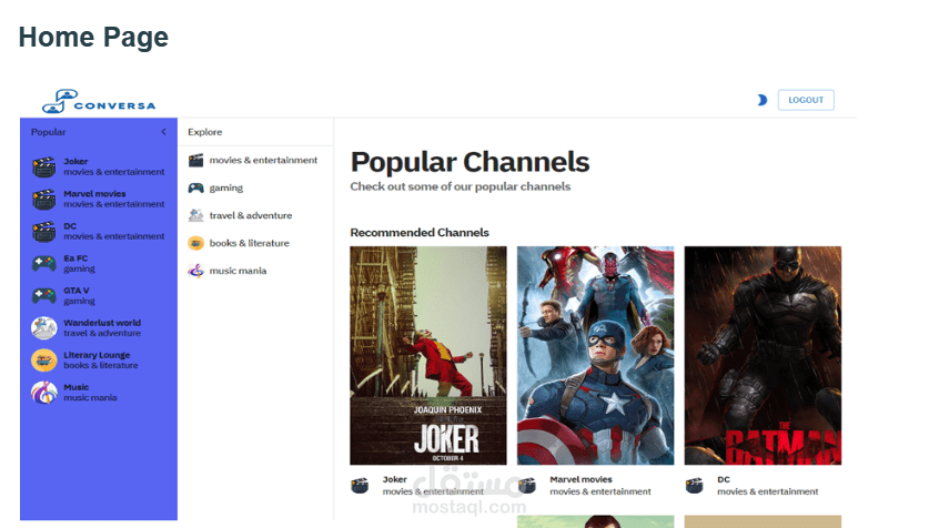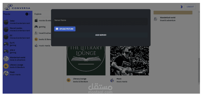 يتيح واجهة المستخدم المصممة بواسطة React للمستخدمين إرسال الرسائل، وتبادل الملفات، ومشاهدة منشورات الصور. كما يُمكن للمستخدمين إنشاء غرف دردشة خاصة ودعوة أصدقائهم للانضمام.