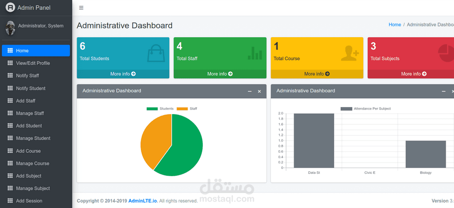 عبارة عن مشروع يحوي مهام الادارة المتعلقة باعداد الكورسات وادارة الطلاب والمعلمين داخل الموقع