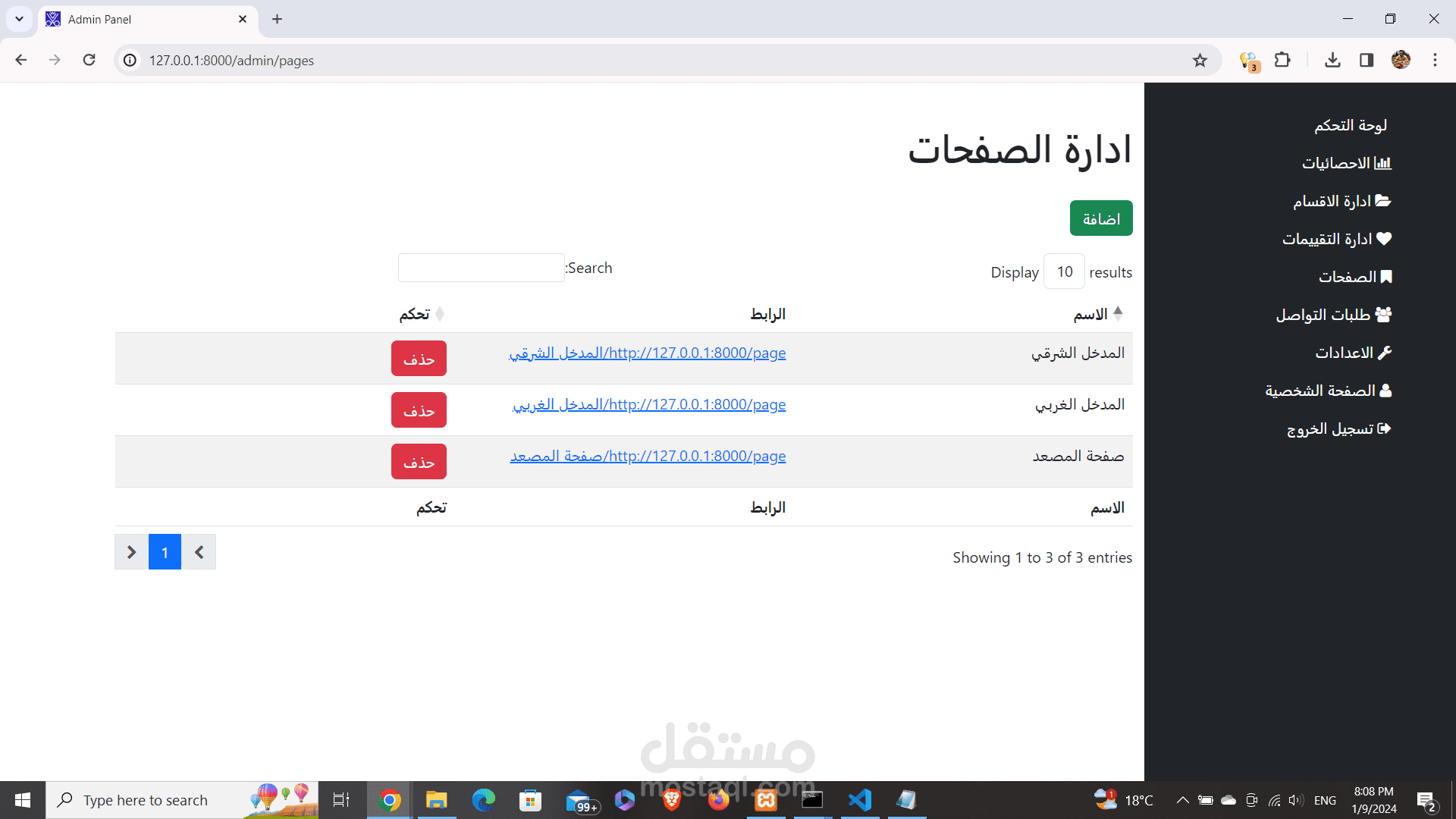 2-اضافة صفحات وفلترة التقييمات حسب كل صفحة مثال: المدخل الشرقي والغربي