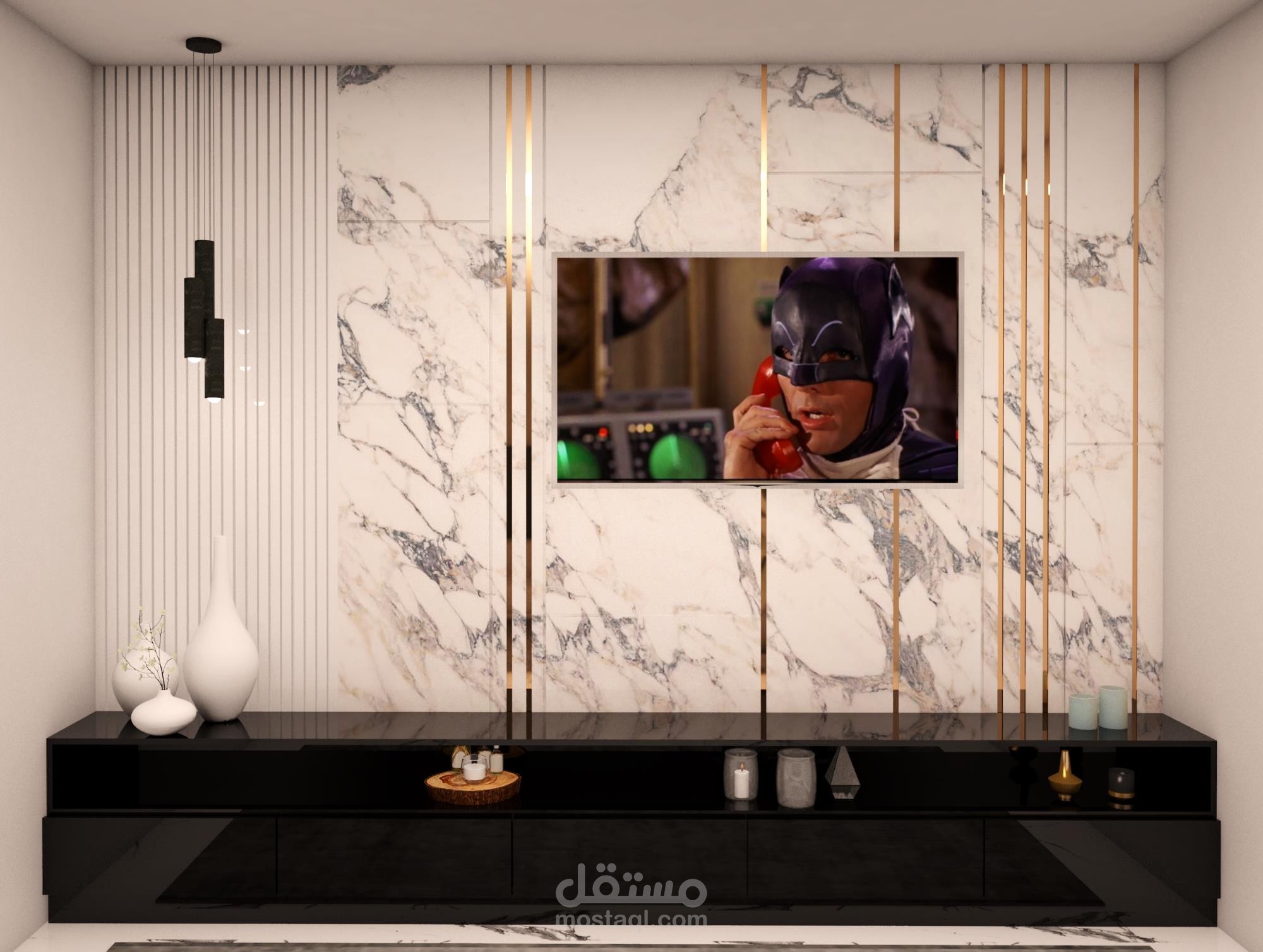 TV unit and wall cladding