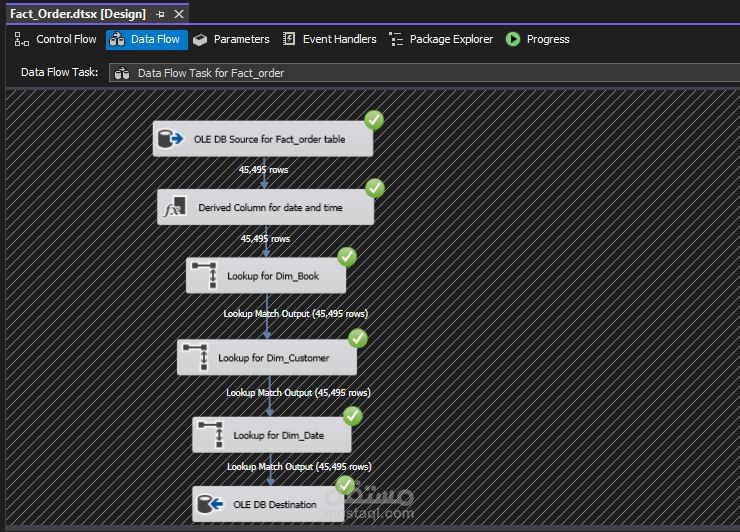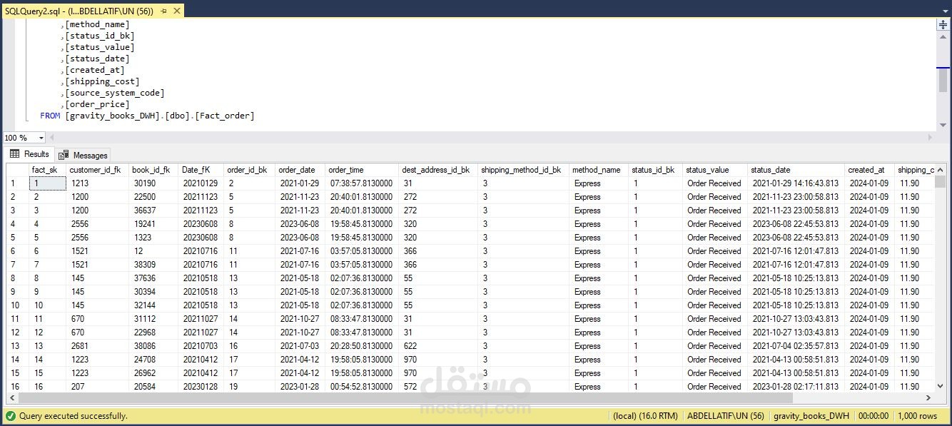 Next, I built a data warehouse called "gravity_books_dwh" to serve as a centralized repository for the transformed data. Utilizing the open-source nature of the database, I used Visual Studio SSIS (SQL Server Integration Services) to orchestrate the data integration process, extracting data, transforming, and loading it into the data warehouse.