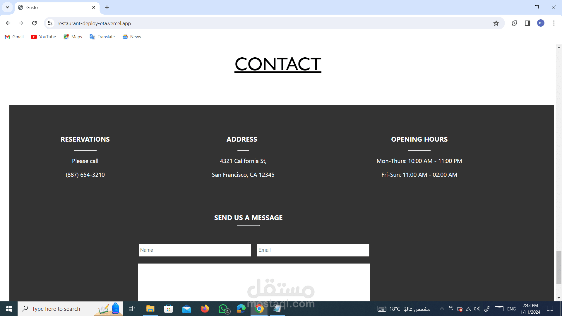 - معلومات الحجز والعنوان وساعات العمل ونموذج اتصال.