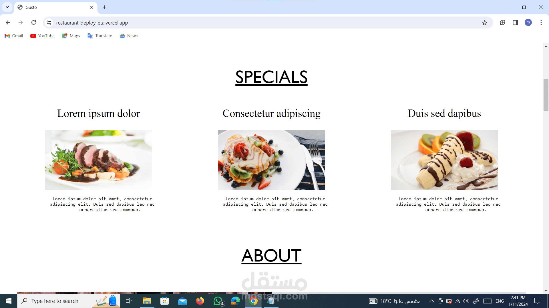 - قسم للعروض الخاصة وقسم لمعلومات حول المطعم.