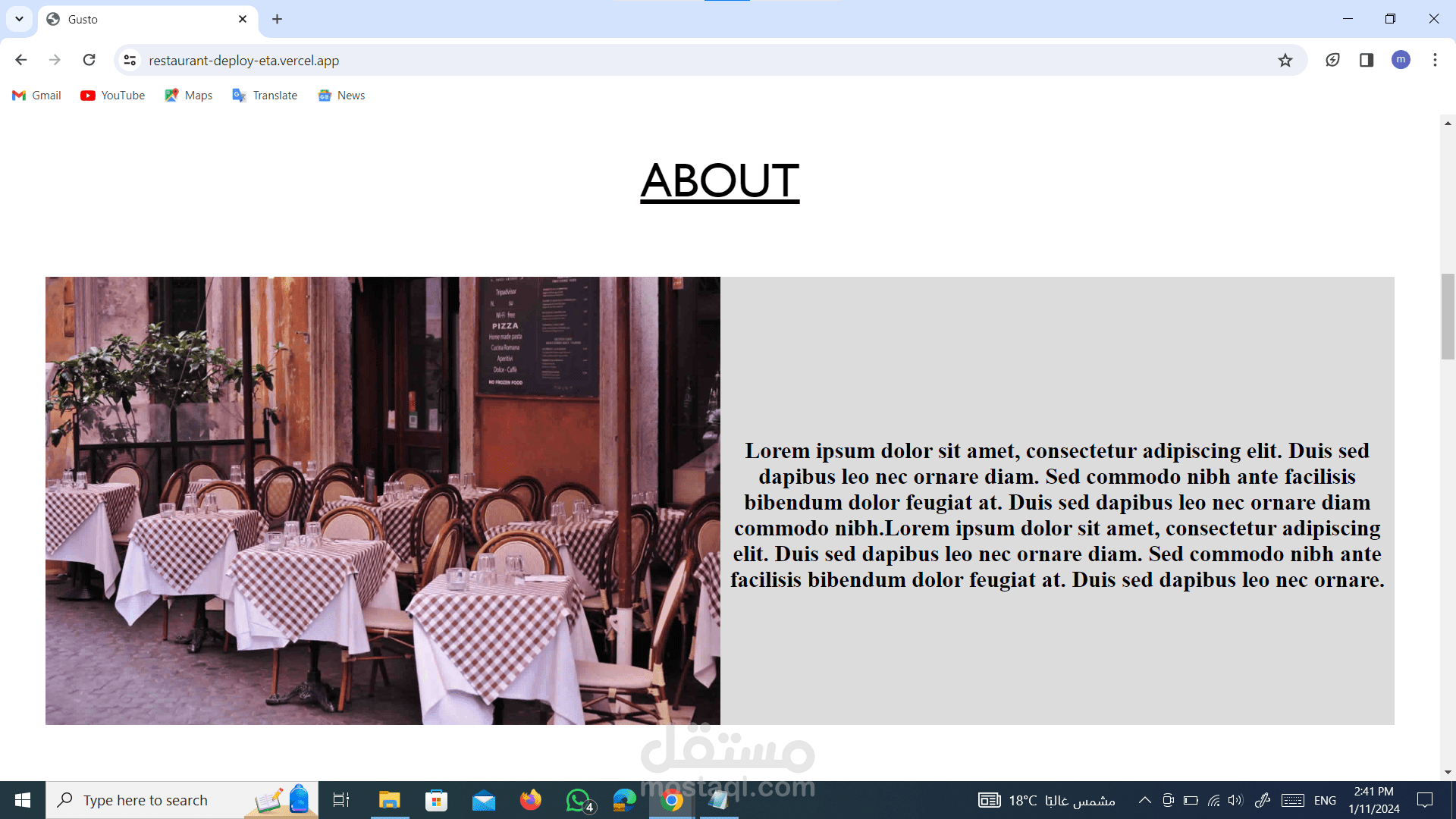 - معلومات إضافية حول المطعم مع صورة خلفية.