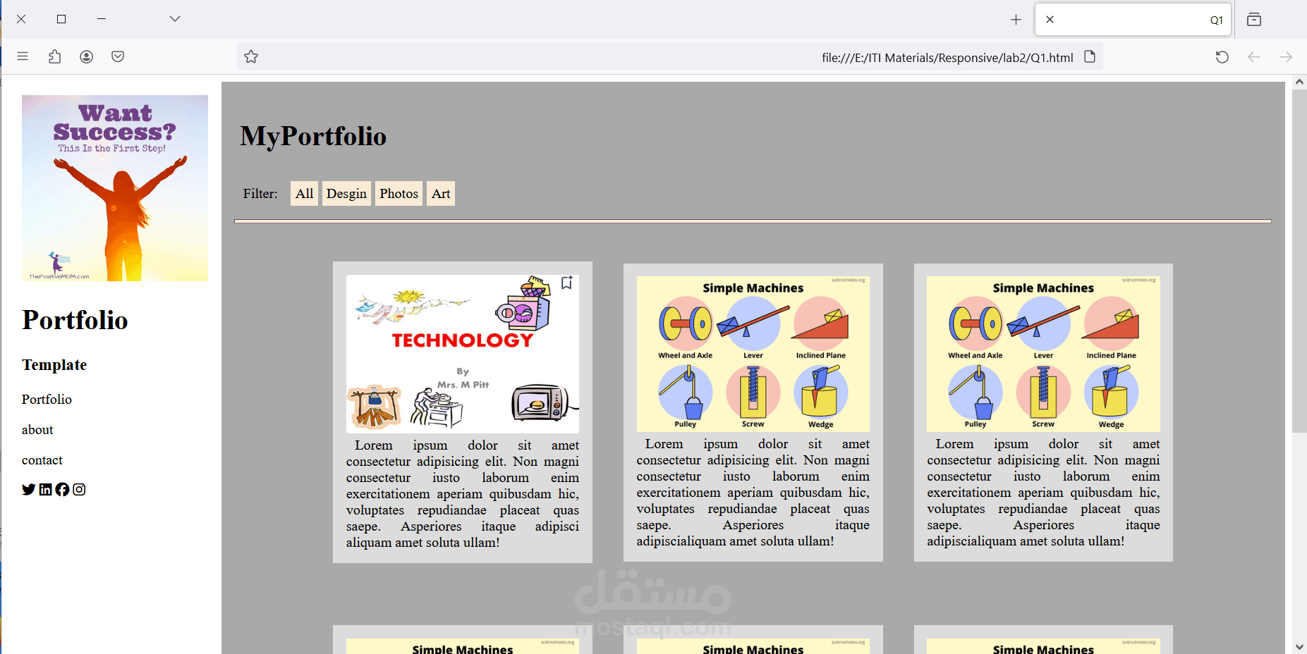 14. `<div class="contaner3">`: عنصر div يحتوي على عناصر البورتفوليو نفسها.