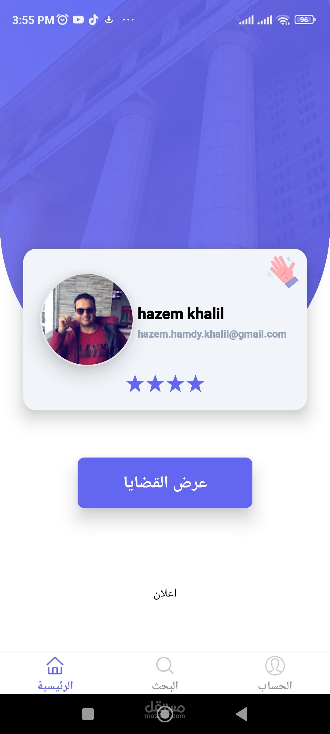 تطبيق خاص بالمحامين وبمن يعمل في مجال القانون حيث يمكن للمستخدم انشاء حساب , وتدوين وتسجيل قضايا عملائه والتعديل عليها واضافة لها ما يشاء من تواريخ الجلسات حيث يتم عرض تلك القضايا المدونة بحسب التاريخ المدونة فيه الدعوى القضائية , كما يستطيع المسخدم العثور على قضايا عملائة عن طريق البحث باسم المدعى او المدعى عليه
