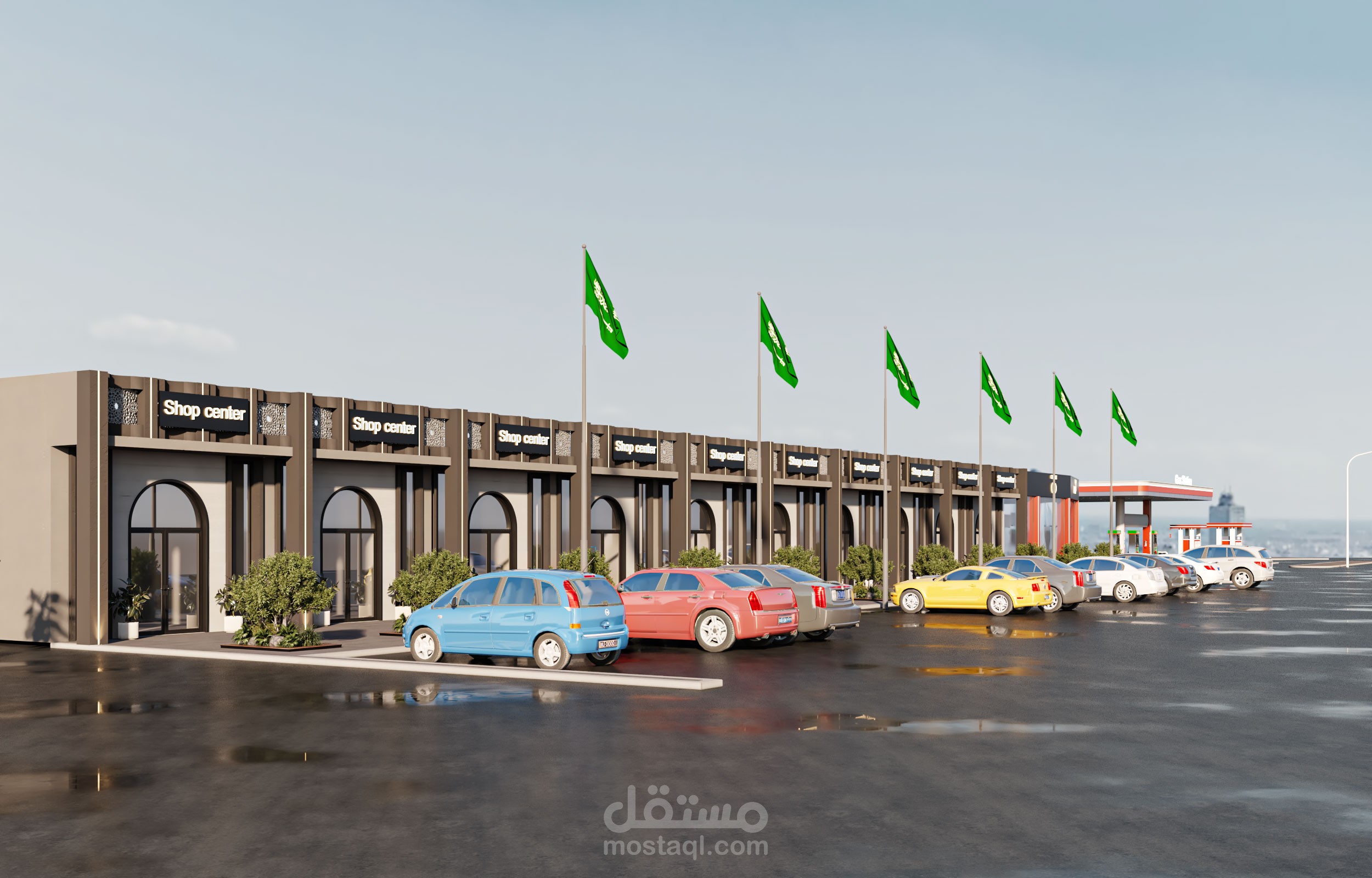 تصميم خارجي للمعارض على الطراز السلماني و تصميم مودرن لمعرض درايف ثرو و تصميم عصري لكازية