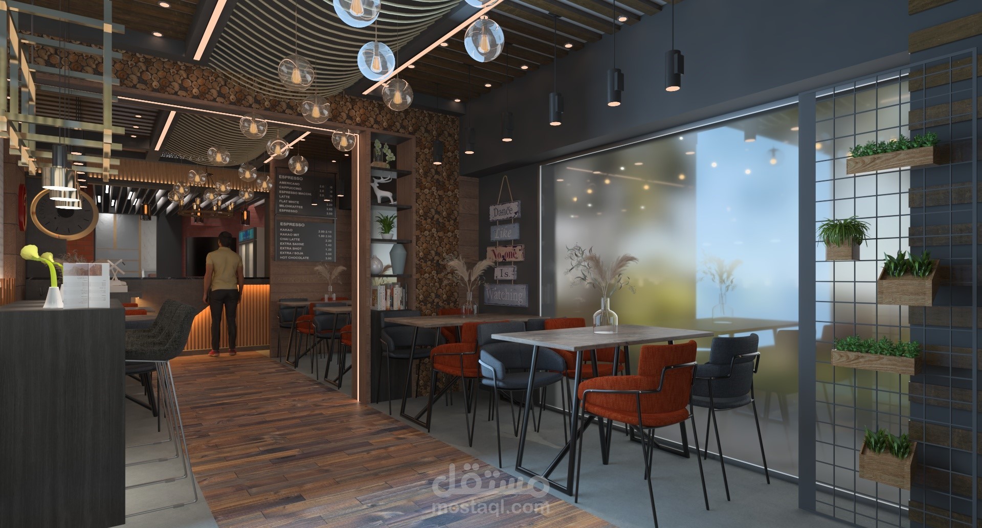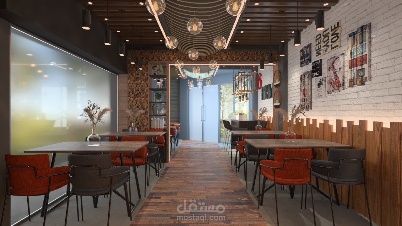 مطعم للمشويات يميل الى الدمج بين الطراز المودرن والمعاصر فى التصميم