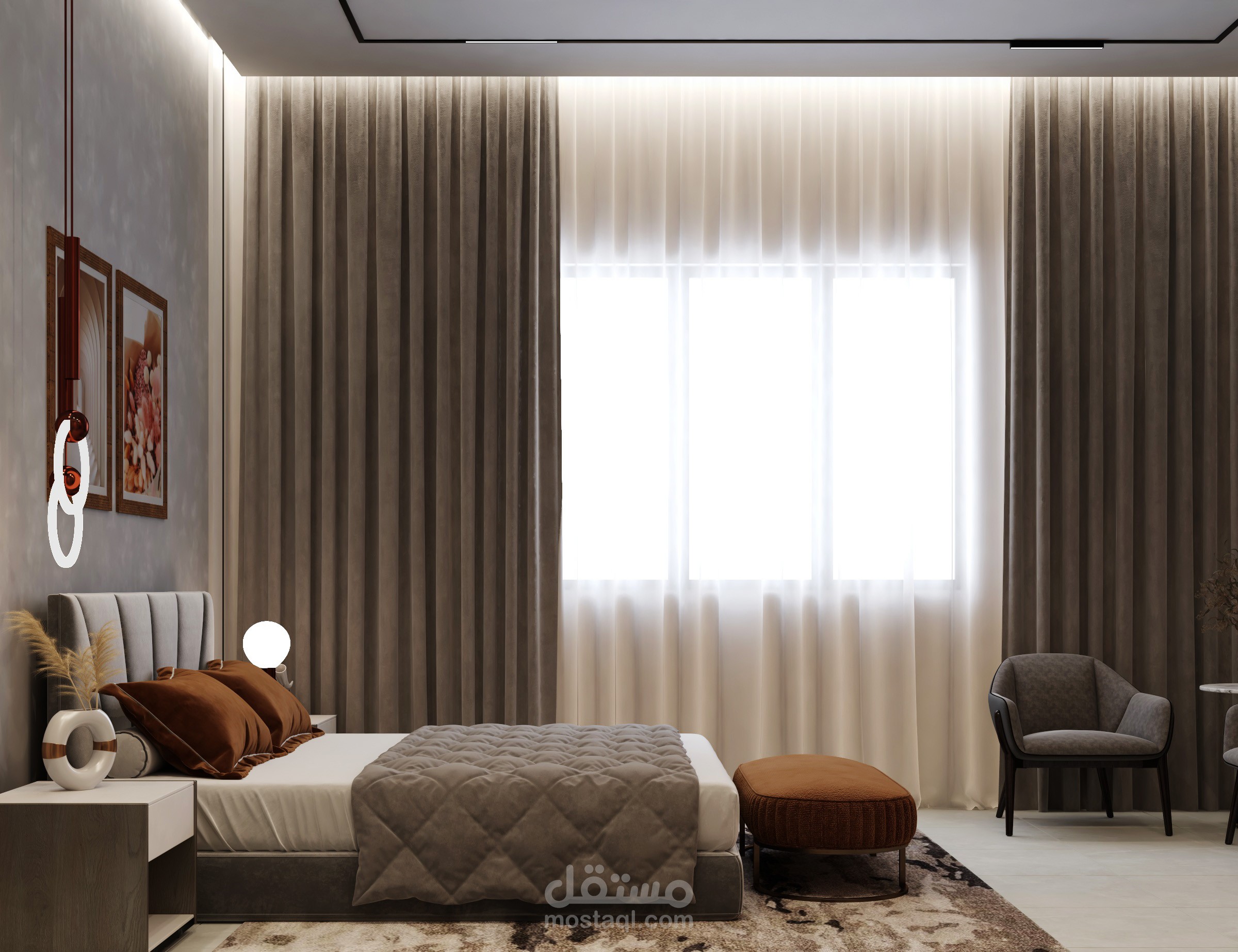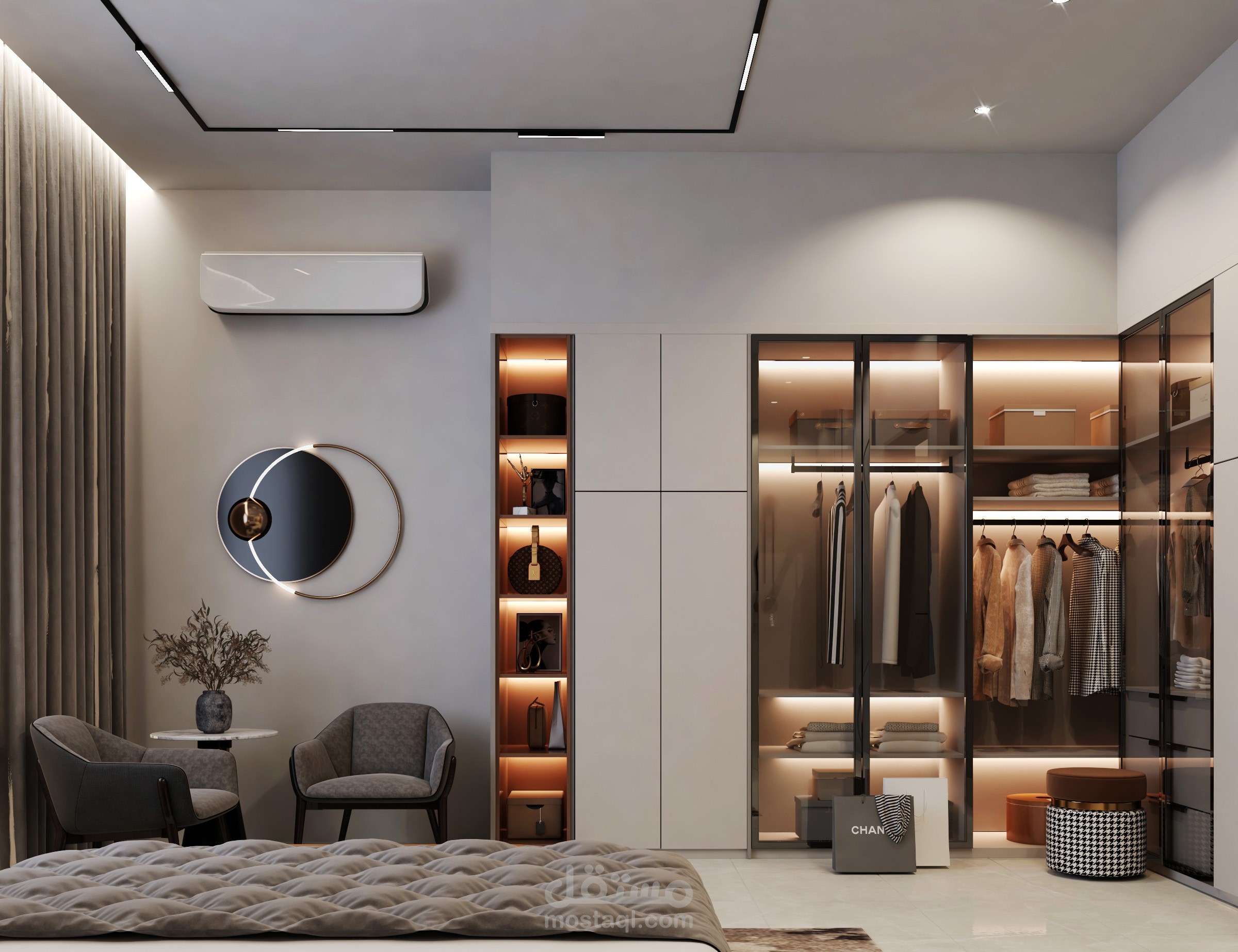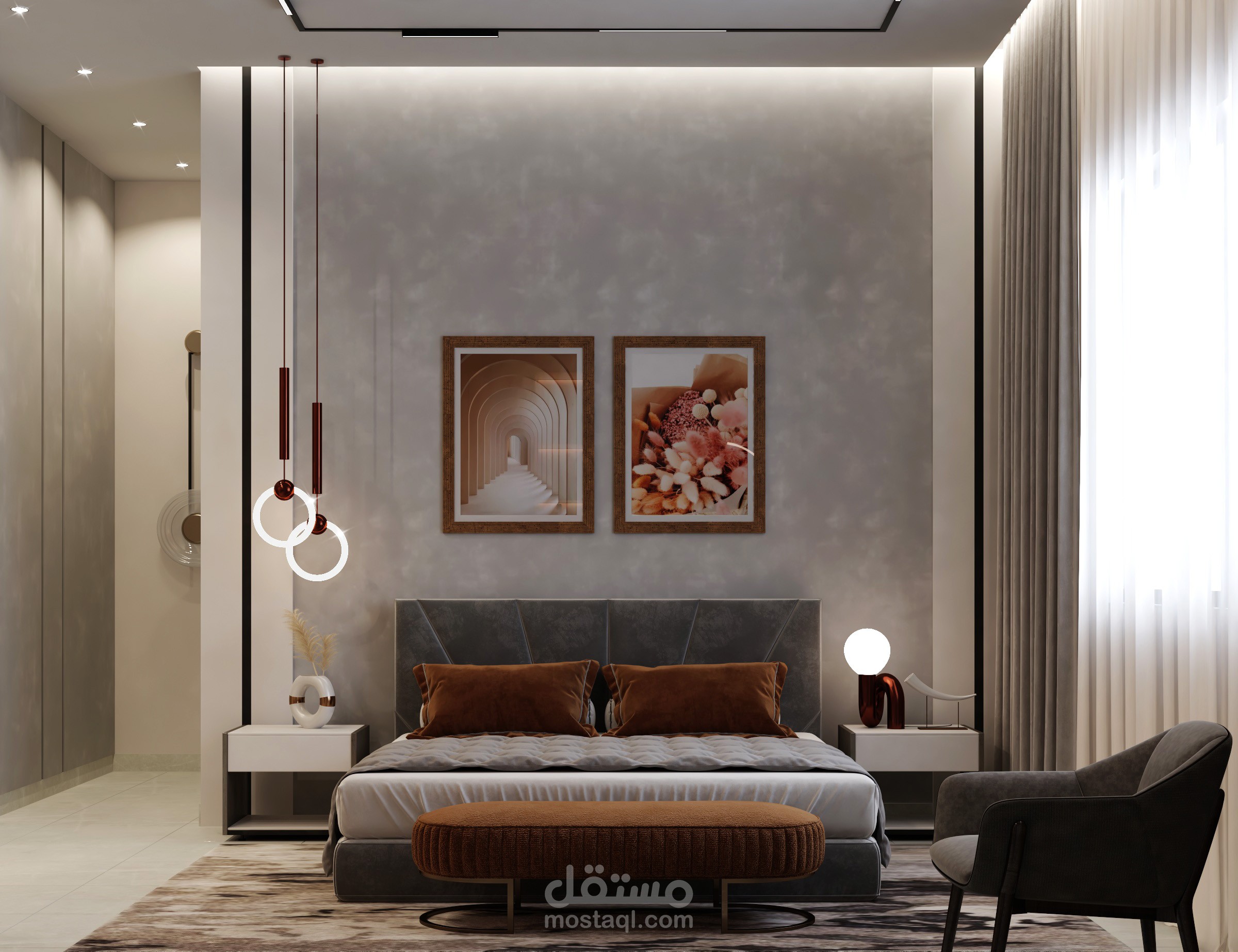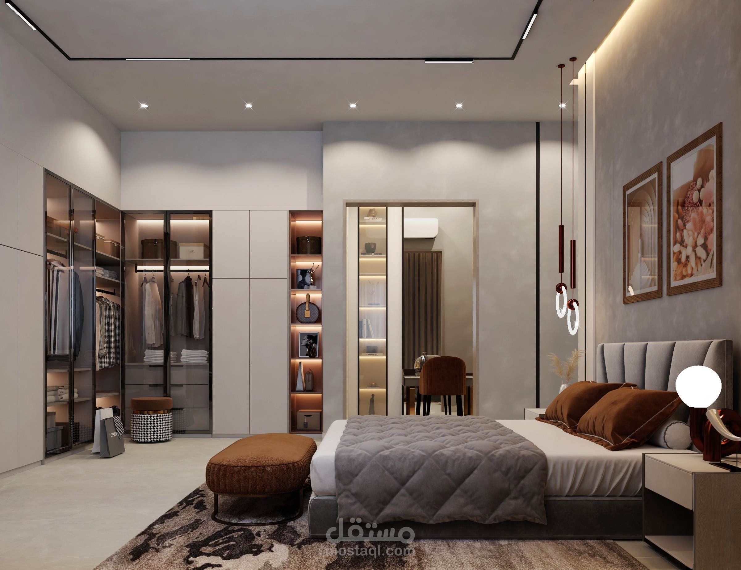 تصميم داخلي لجناح غرفة نوم علي الطراز الحديث